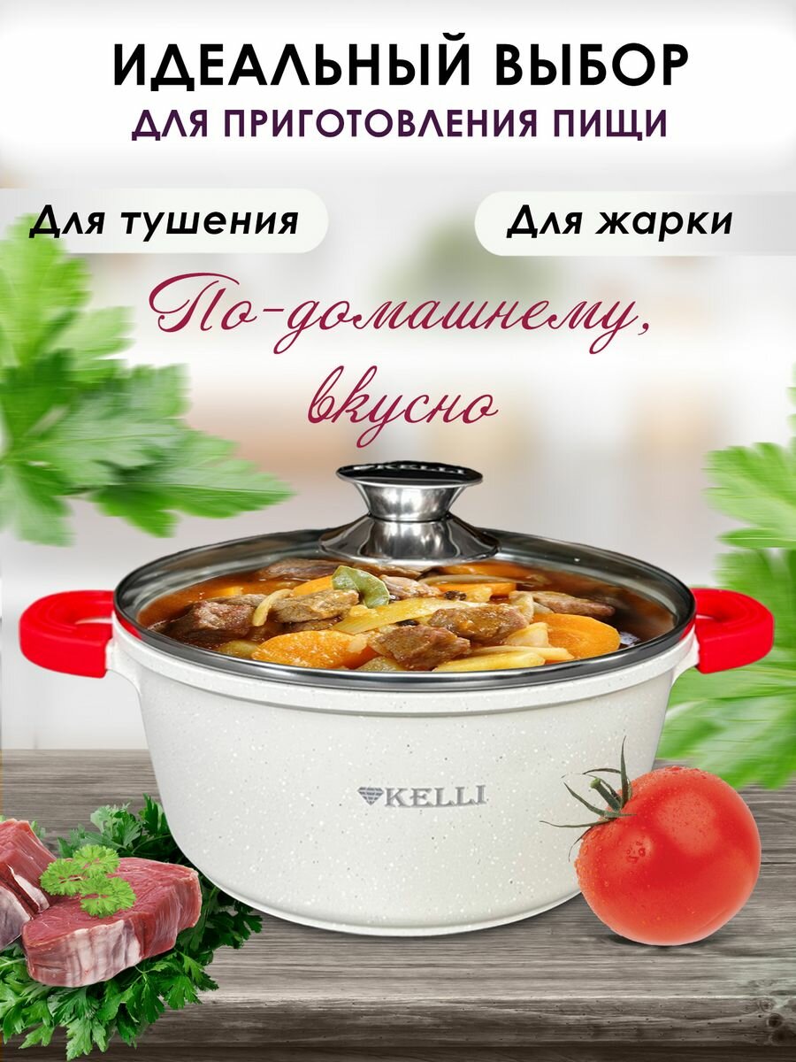 Отзывы на Кастрюля с антипригарным покрытием Kelli, гранит, 4,5 л, белый