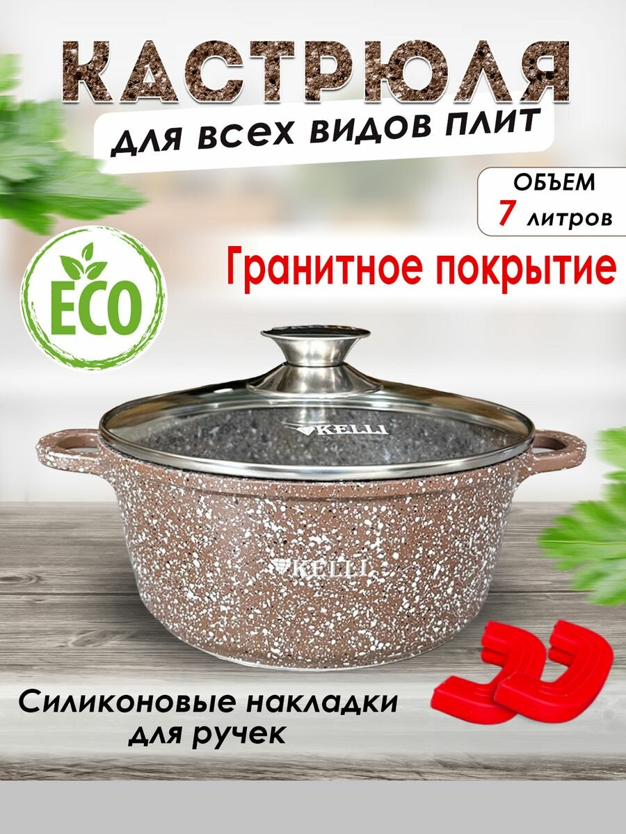 Отзывы на Кастрюля с антипригарным покрытием Kelli, гранит, 7 л, коричневый
