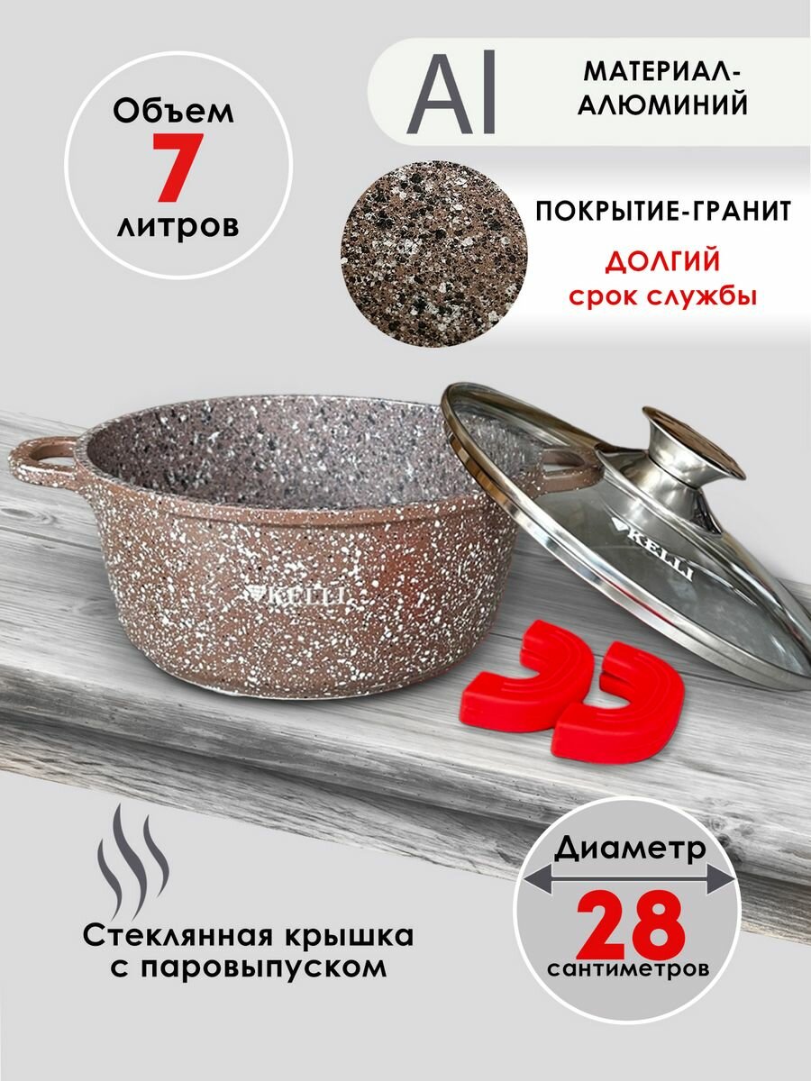 Кастрюля с антипригарным покрытием Kelli, гранит, 7 л, коричневый информация: