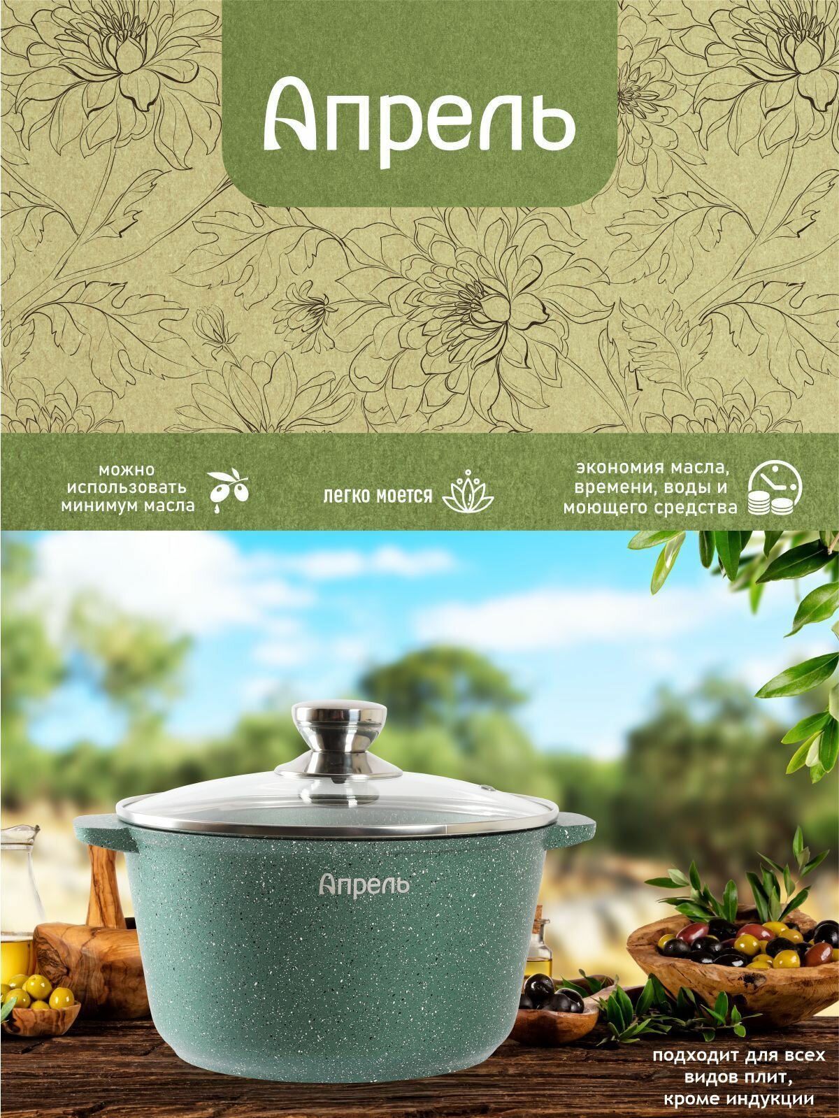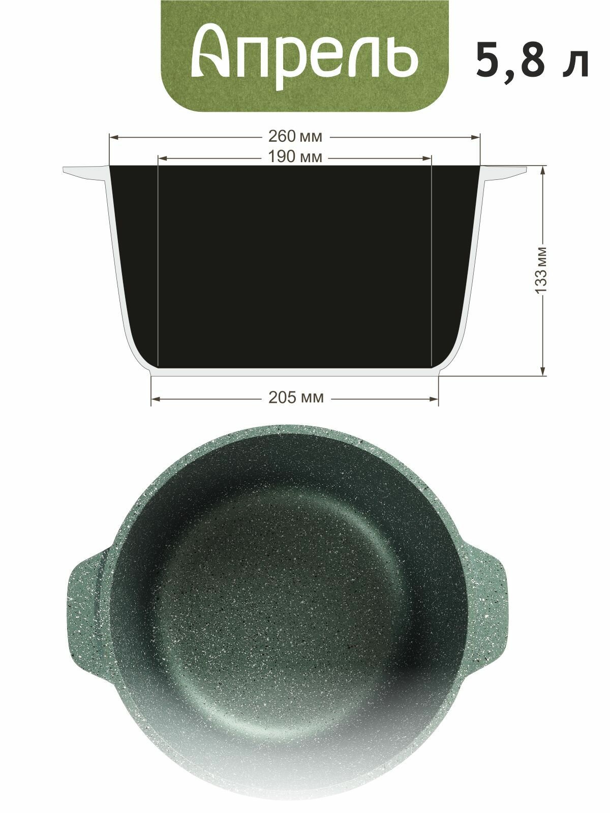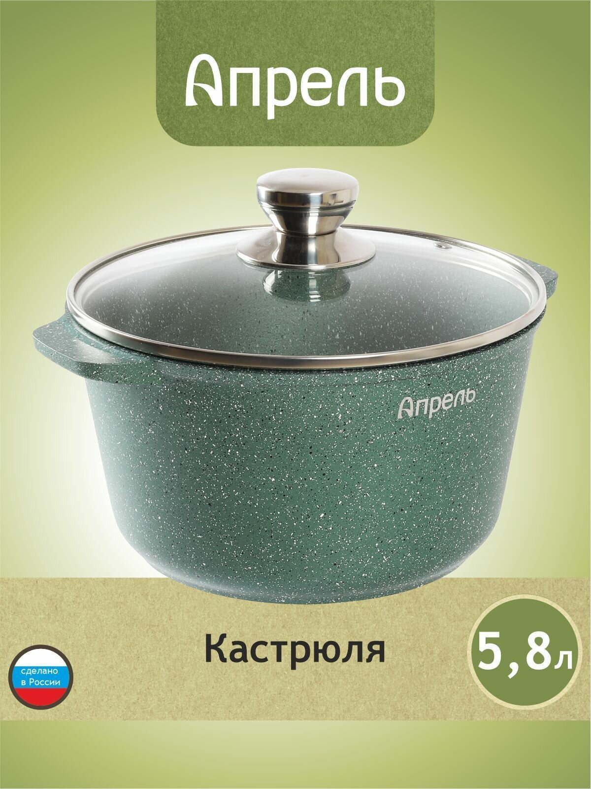 Кастрюля "Апрель" 6 л с антипригарным покрытием с крышкой, можно мыть в посудомоечной машине информация: