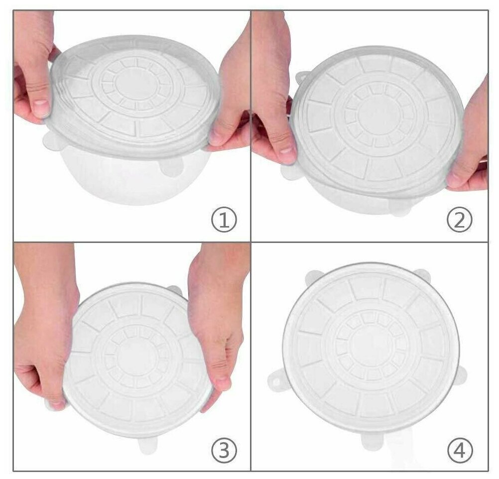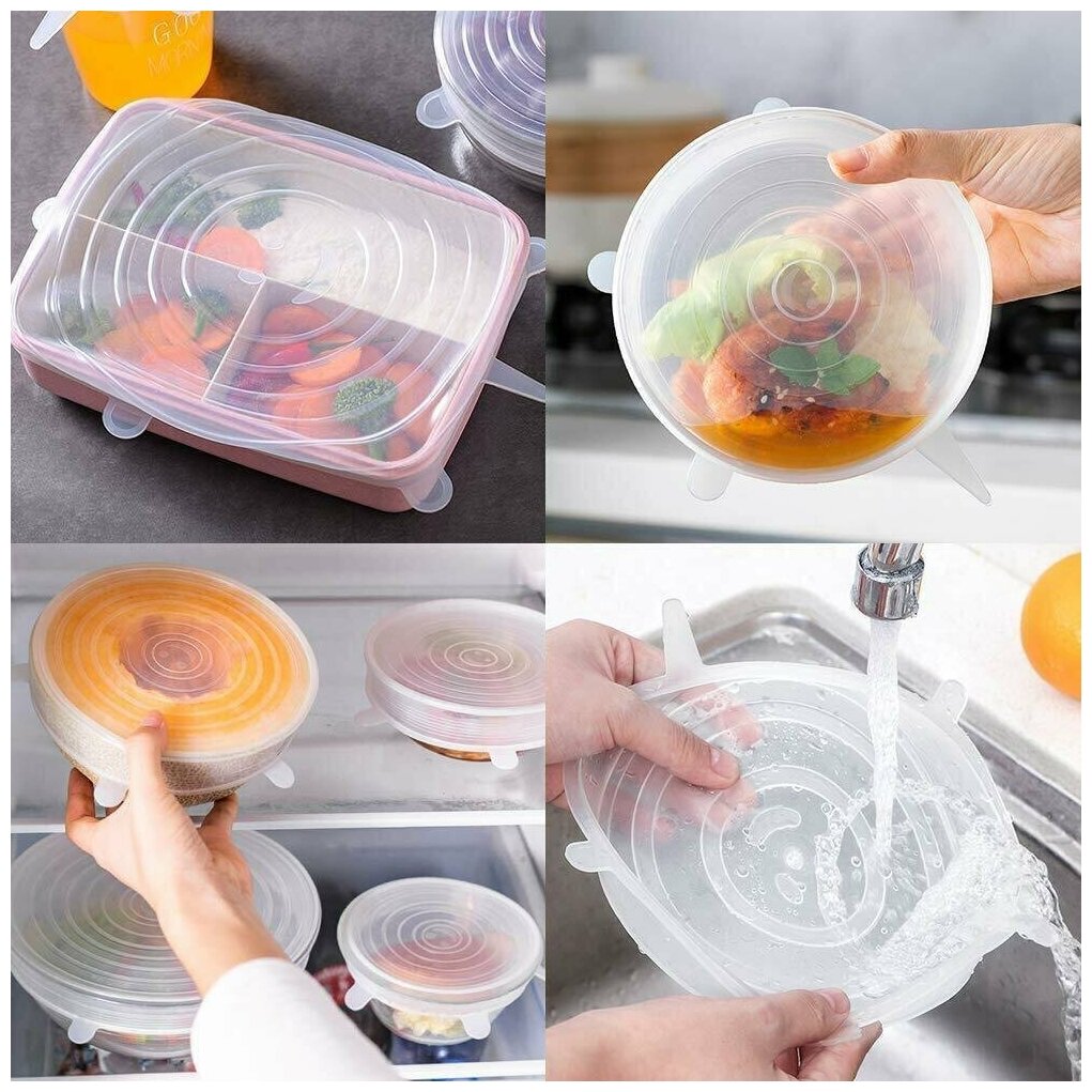 Отзывы на Набор универсальных растягивающихся силиконовых крышек Casalinga, комплект 6 шт, прозрачные