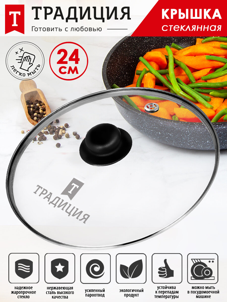 Крышка стеклянная с пластиковой кнопкой 24см TM Традиция готовить с любовью информация: