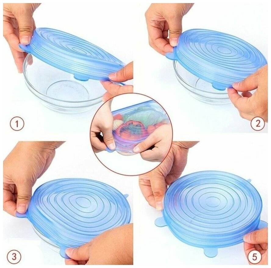 10 цен на Набор универсальных растягивающихся крышек для посуды. Силиконовые крышки для банок и контейнеров