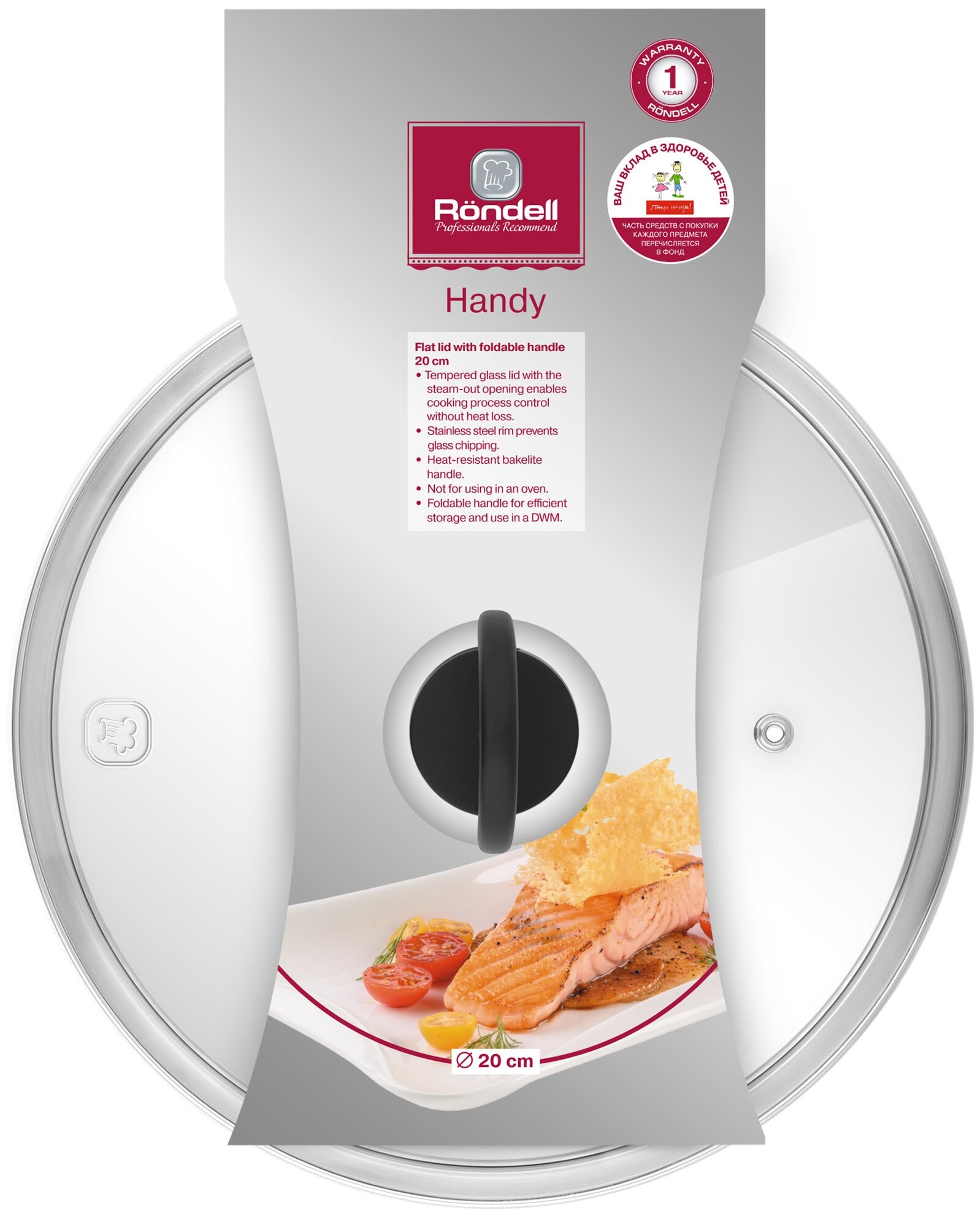 Крышка стеклянная плоская 20 см Handy Rondell RDA-1685 информация: