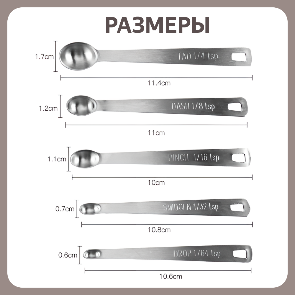 Мерные ложечки из нержавеющей стали, комплект 5 шт. информация: