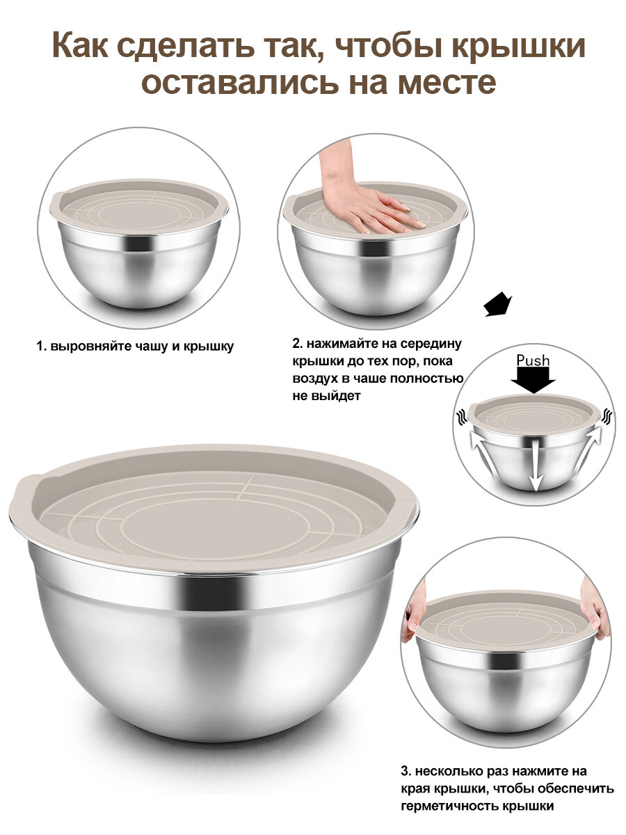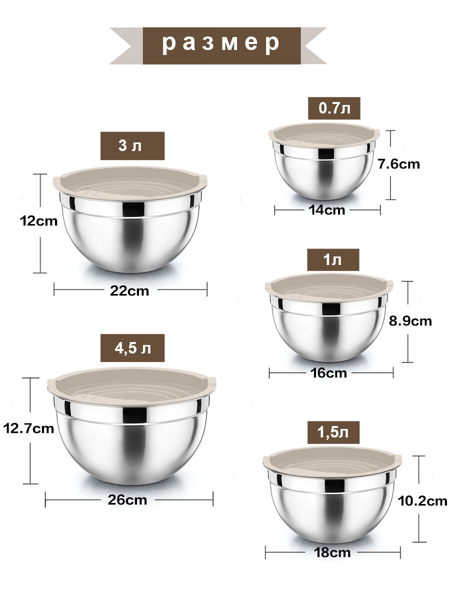 | Комплектация | набор мисок с крышками поставляется в (0,7л + 1л + 1,5л + 3 л + 4,5 л) |