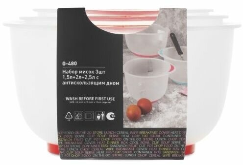Набор мисок 3шт 1.5л+2л+2.5л с антискользящим дном информация: