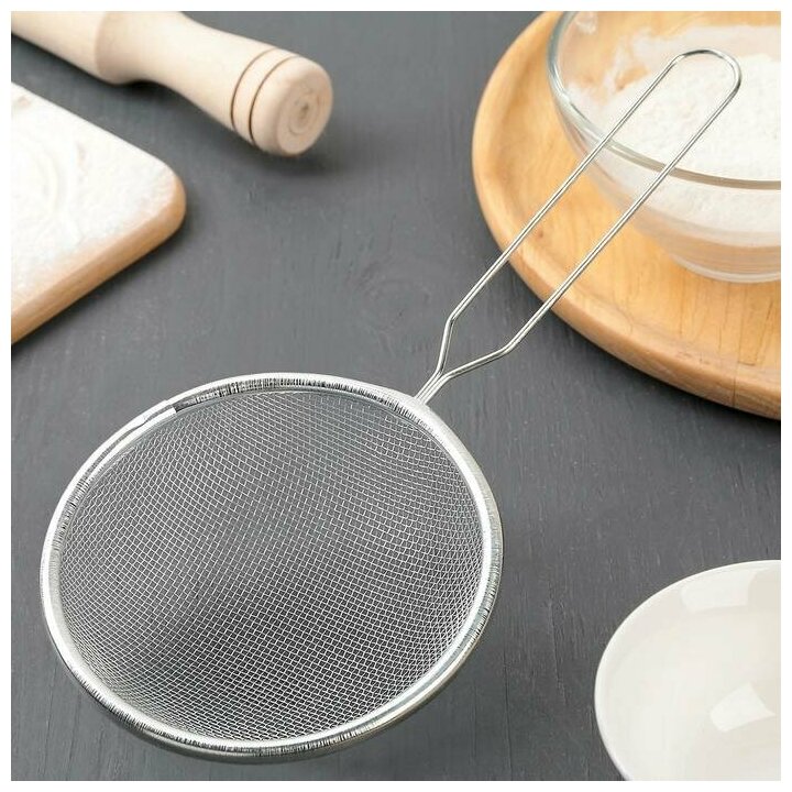 Сито для муки с ободом и ручкой 8 см, металл 155 ₽