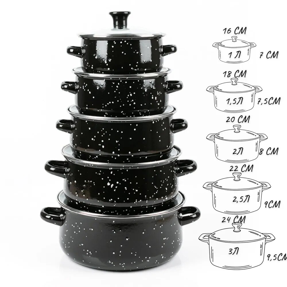 10 цен на Кастрюли черные 5 штук набор