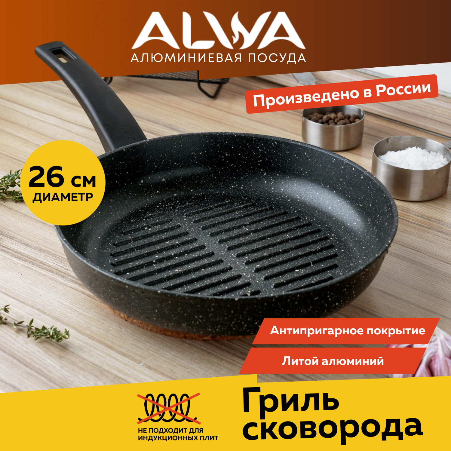 10 цен на Сковорода гриль ALWA 26 см с антипригарным покрытием литая