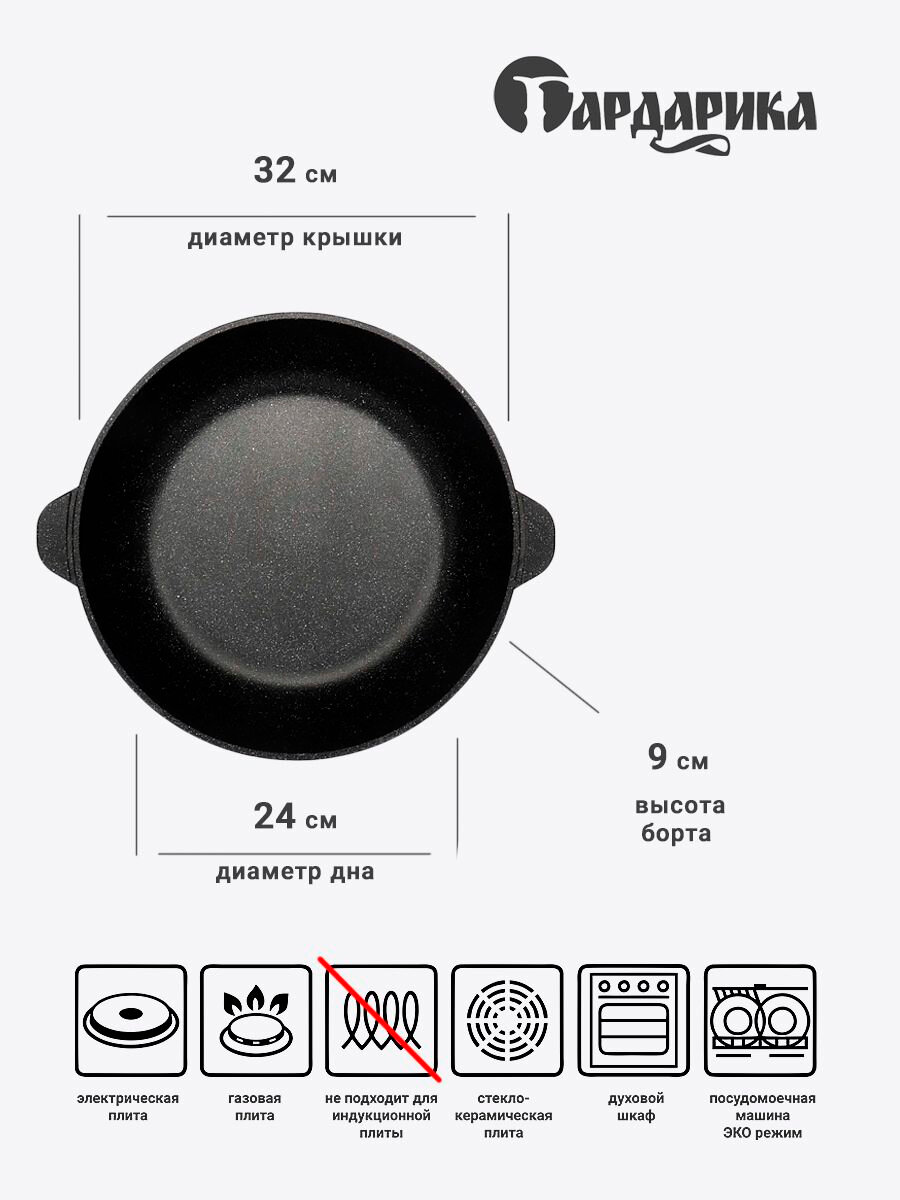 Жаровня 32 см 6.2 л. с крышкой Гардарика информация:
