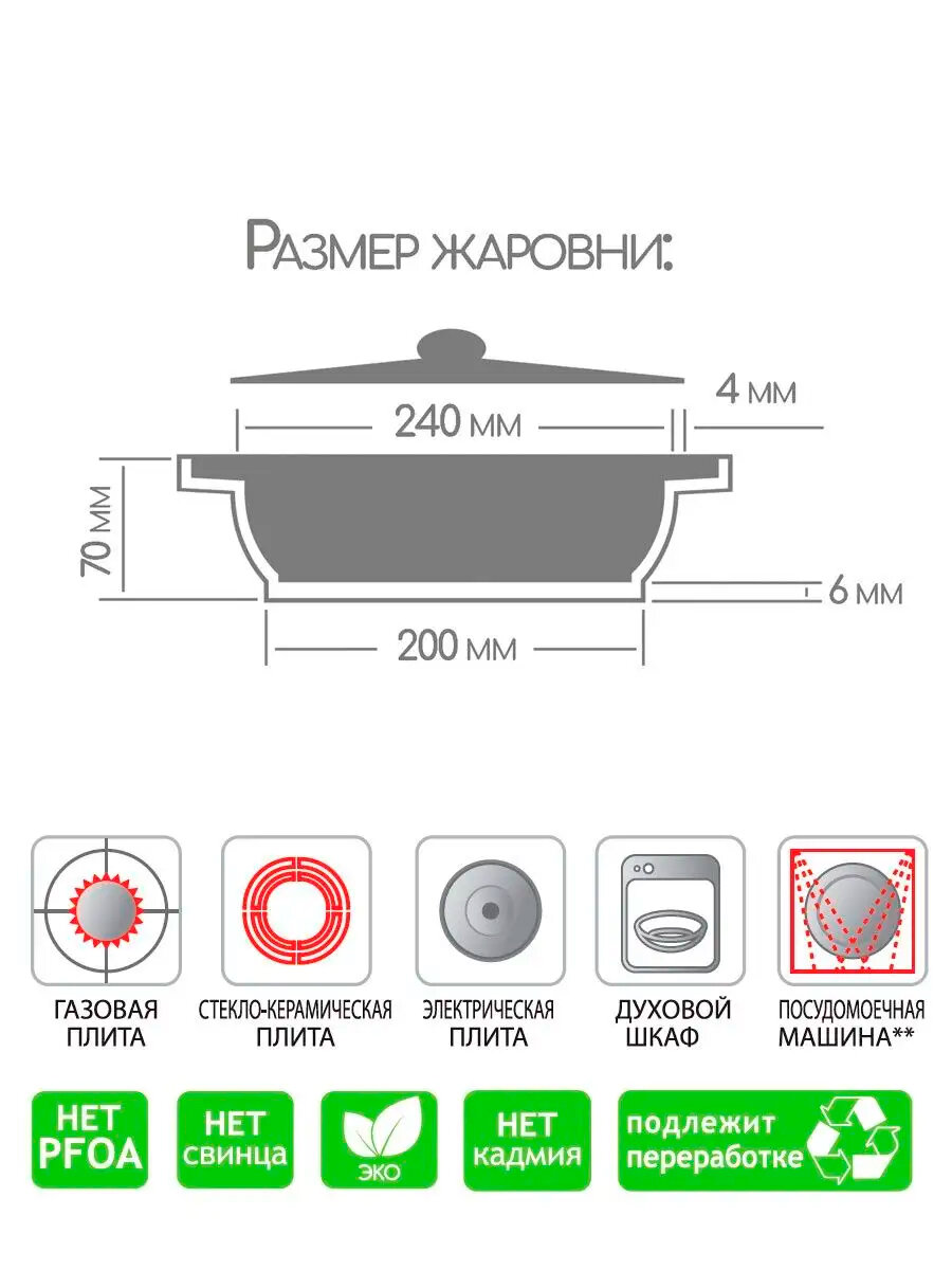 | Комплектация | жаровня - 1 шт, крышка - 1 шт. |