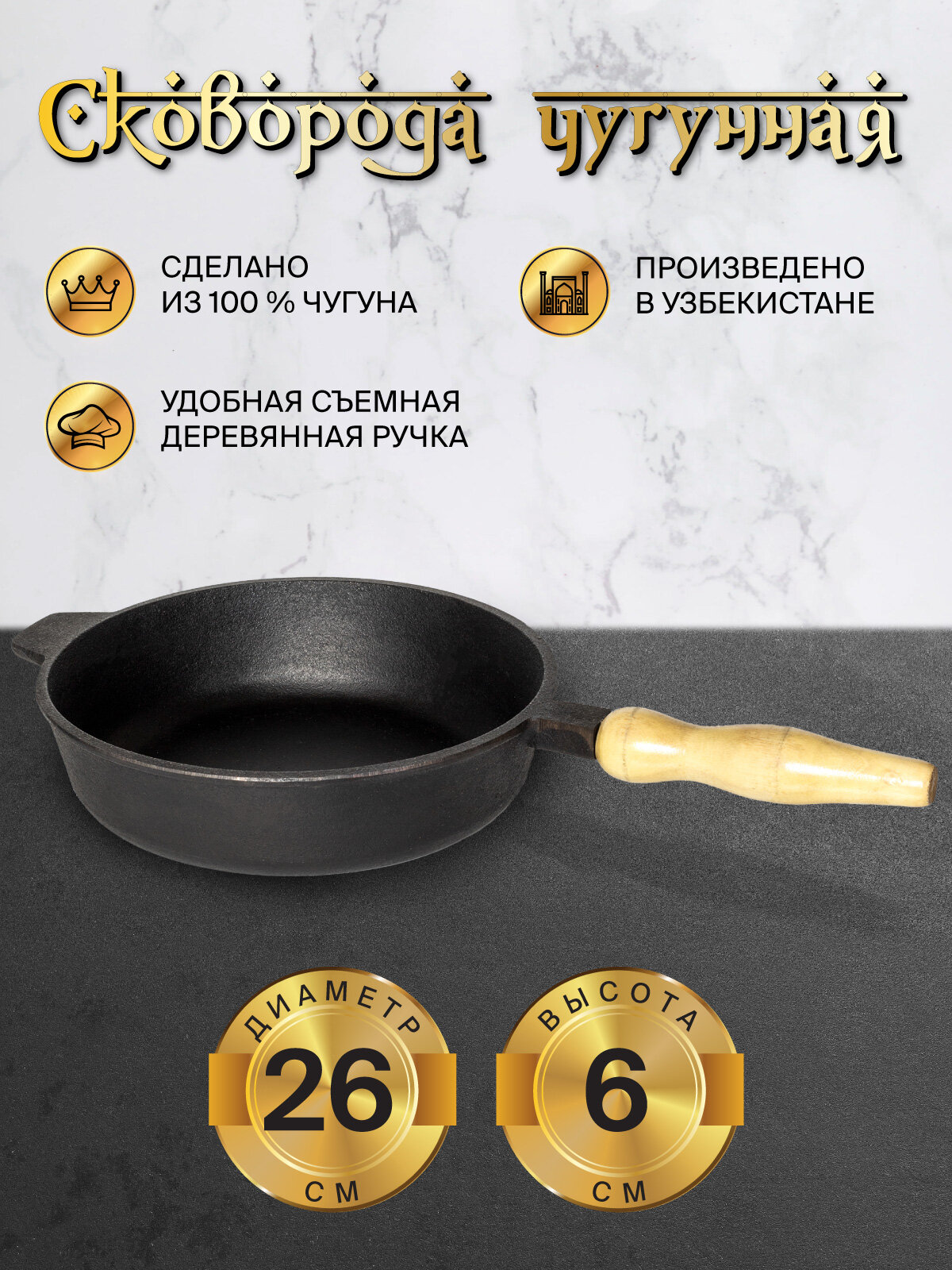 Сковорода чугунная 26 см, высота 6 см, со съемной ручкой информация:
