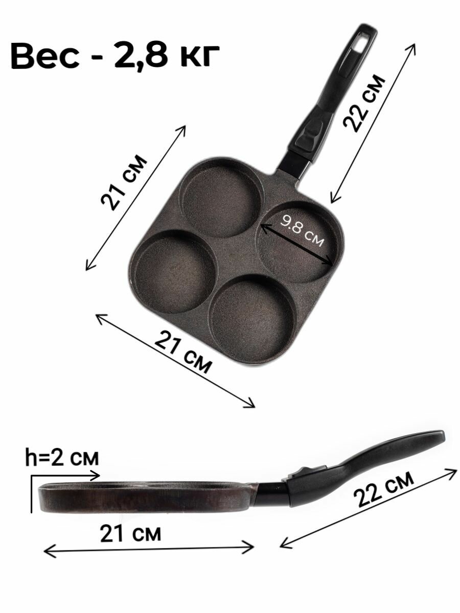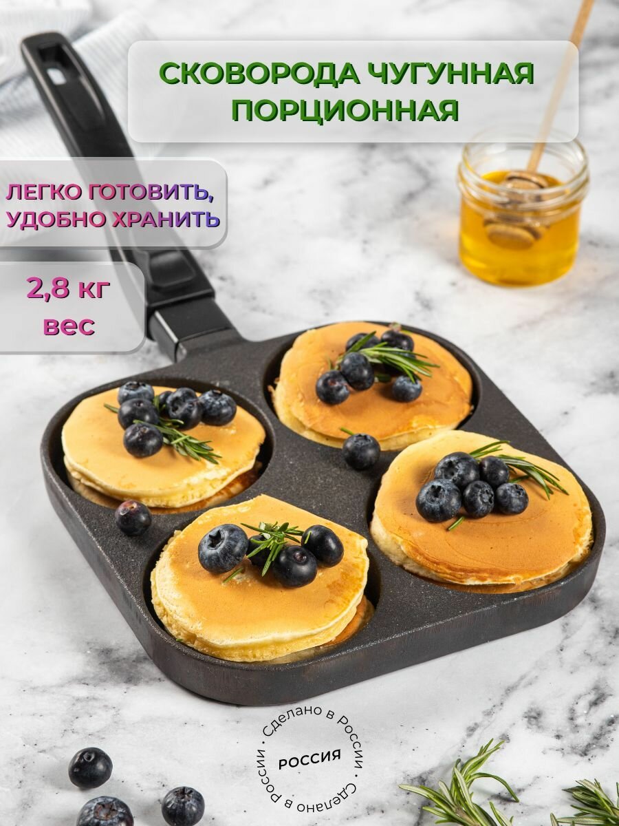 Сковорода чугунная 4х порционная 21х21см информация: