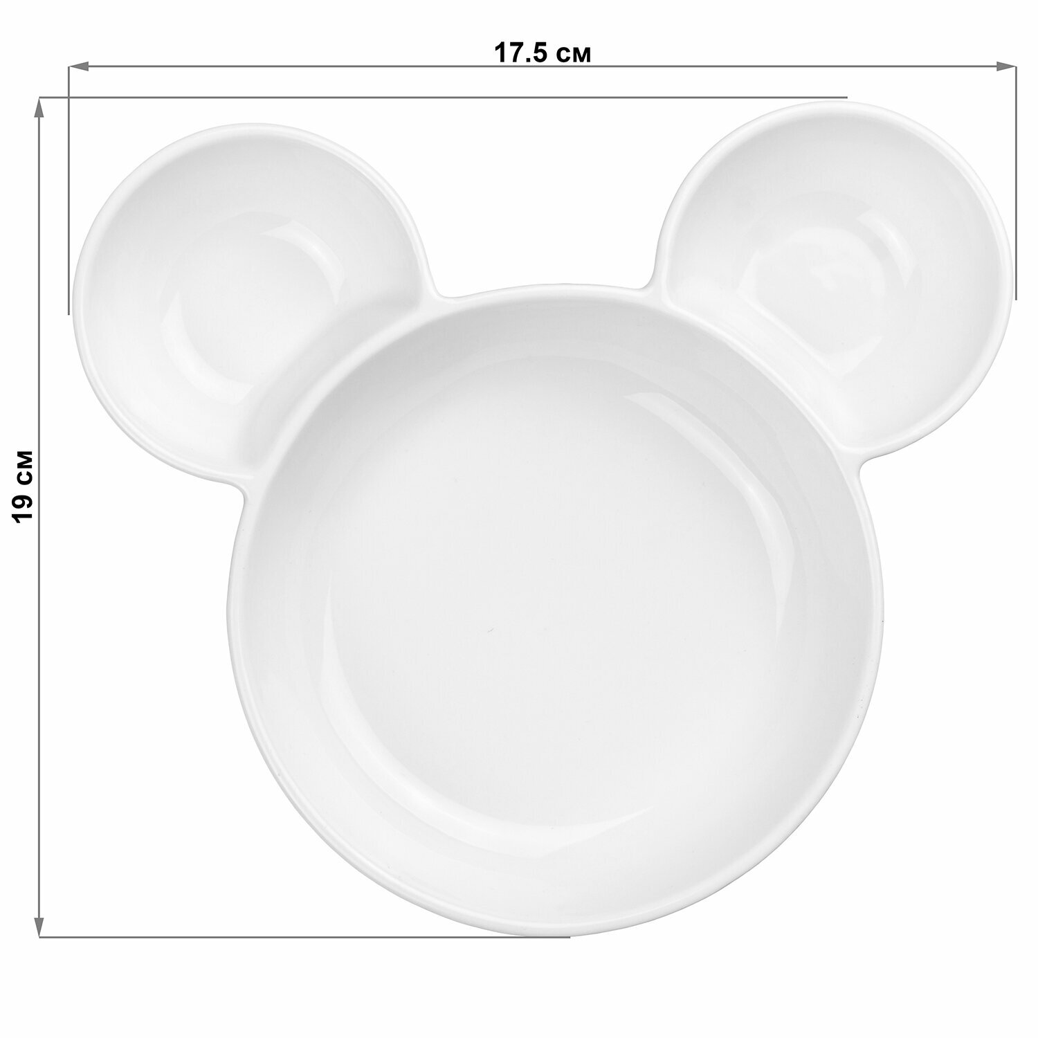 | Комплектация | Тарелка менажница сервировочная 19*17,5*3 см "Мышка" цельная 3 секции |