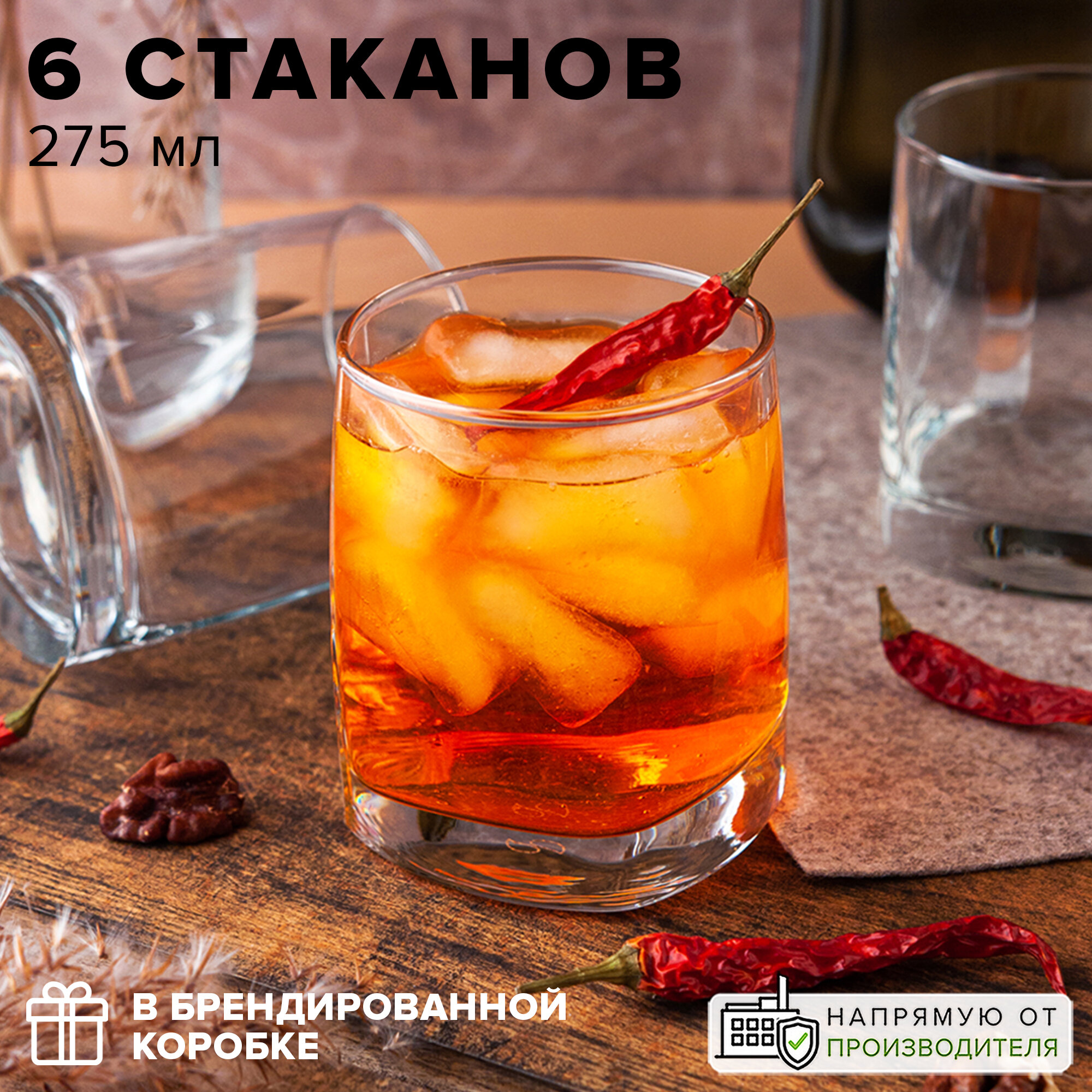 | Дополнительная информация | набор стеклянных низких стаканов 275 мл бренда Pasabahce |