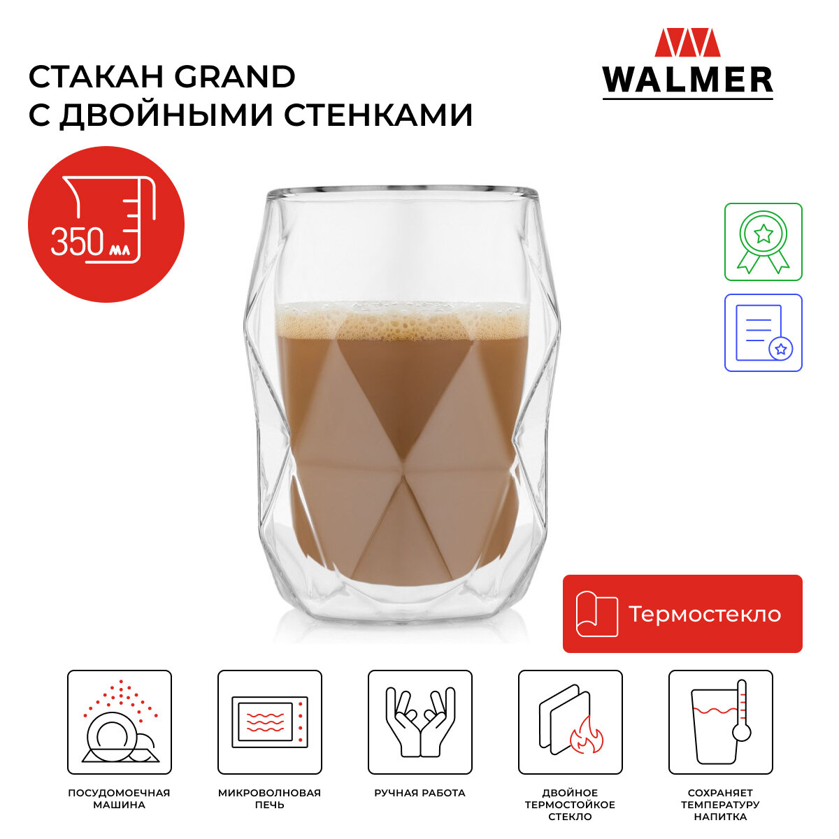 Отзывы на Стакан стеклянный Walmer Grand с двойными стенками 0.35 л цвет прозрачный