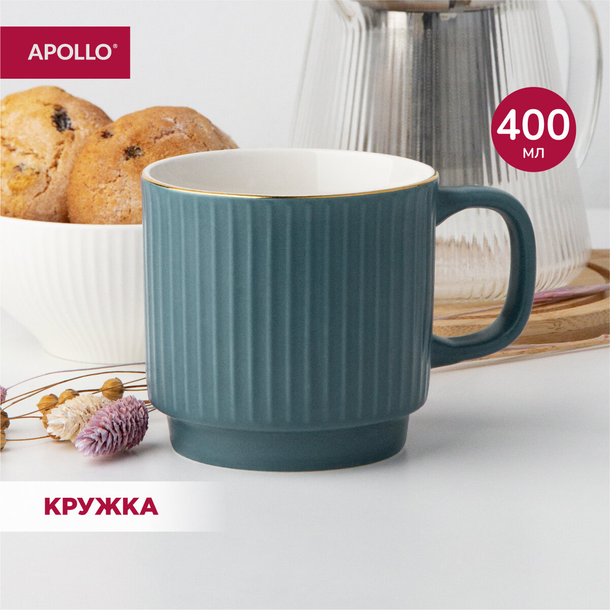 Кружка, чашка фарфоровая APOLLO "Ribb" 370 мл