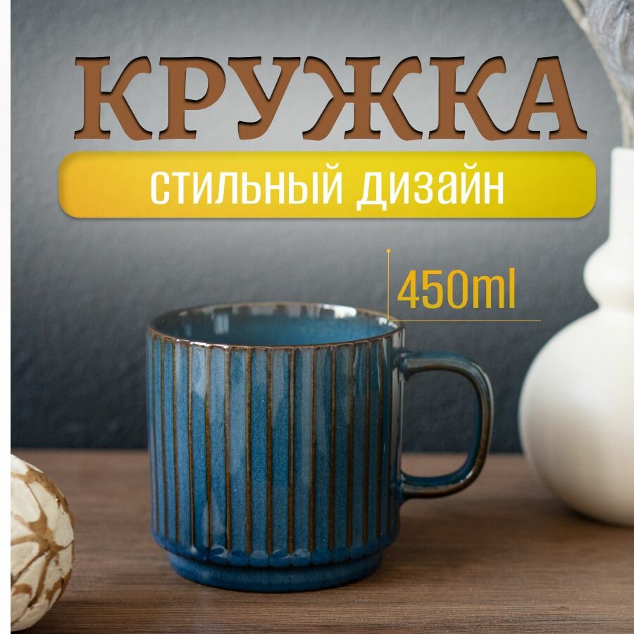 10 цен на Кружка керамическая 450мл цвет синий. Глазурованная кружка для чая, кофе, какао
