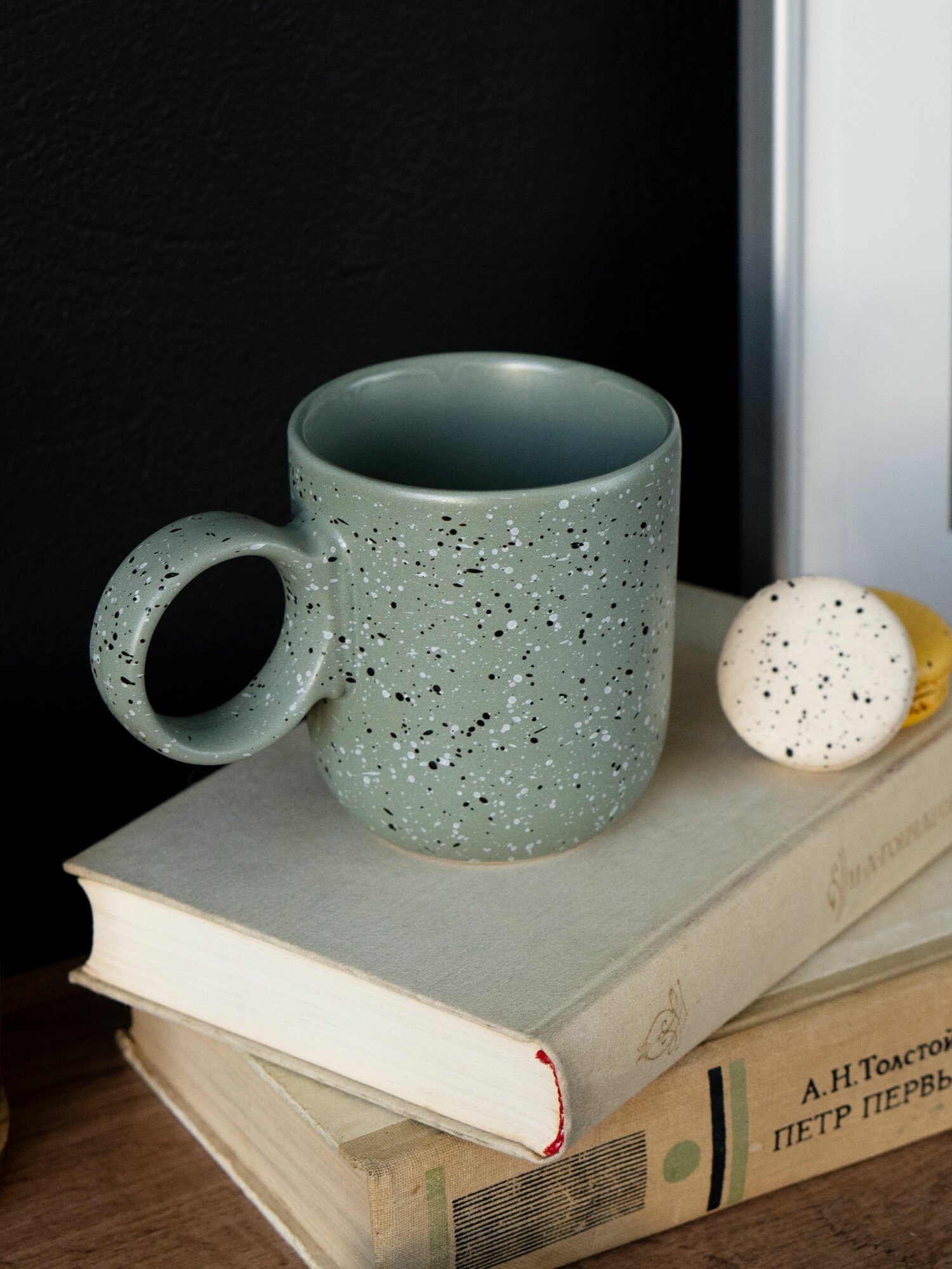 Кружка керамическая 400мл цвет зеленый в крапинку. Матовая кружка для чая, кофе, какао 753 ₽