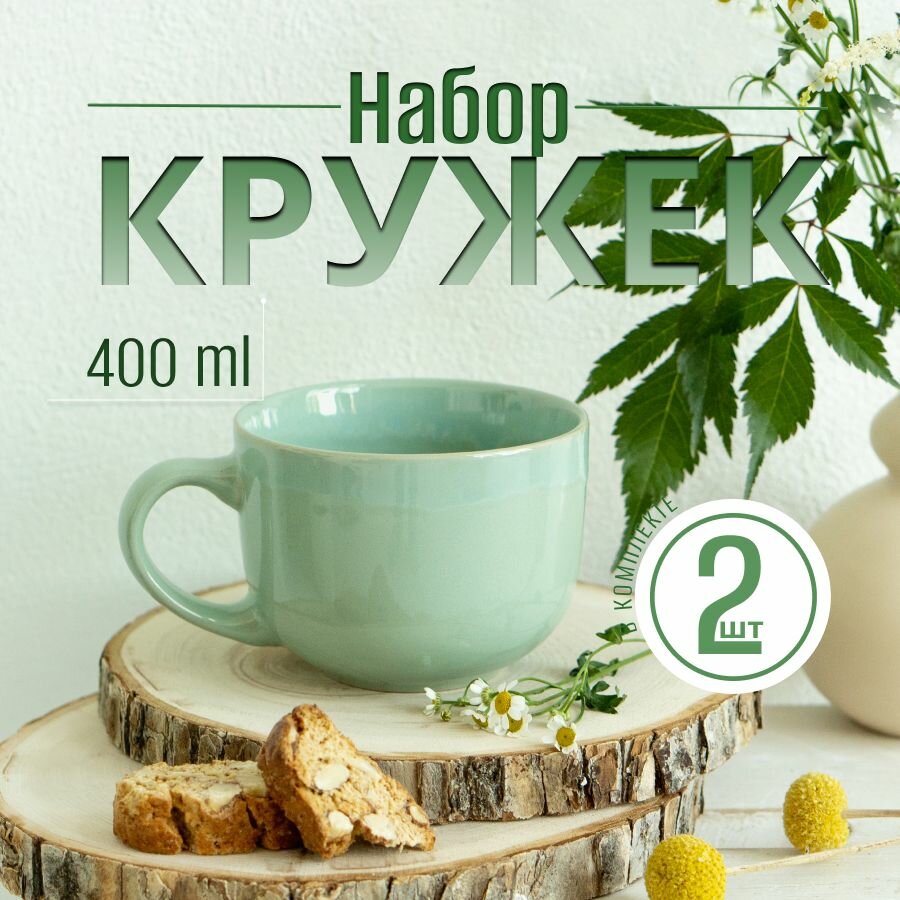 10 цен на Набор кружек 2шт 400мл керамика цвет зеленый. Глазурованная кружка для чая, кофе, какао на 2 персоны