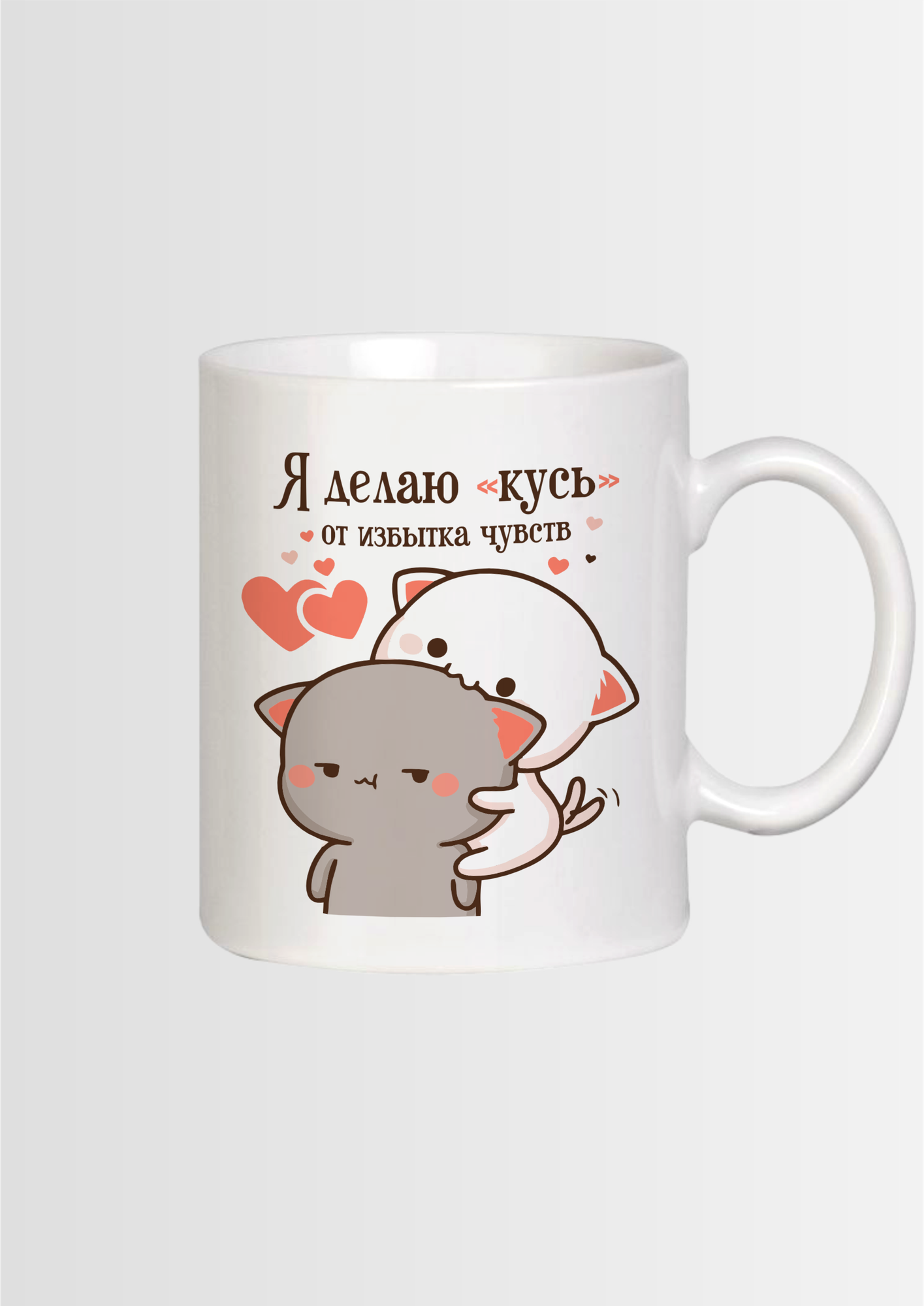 Белая подарочная кружка из керамики с приколом и мемом для влюбленных с сердцем и милыми котиками "Я делаю кусь", для чая и кофе, 330 мл информация: