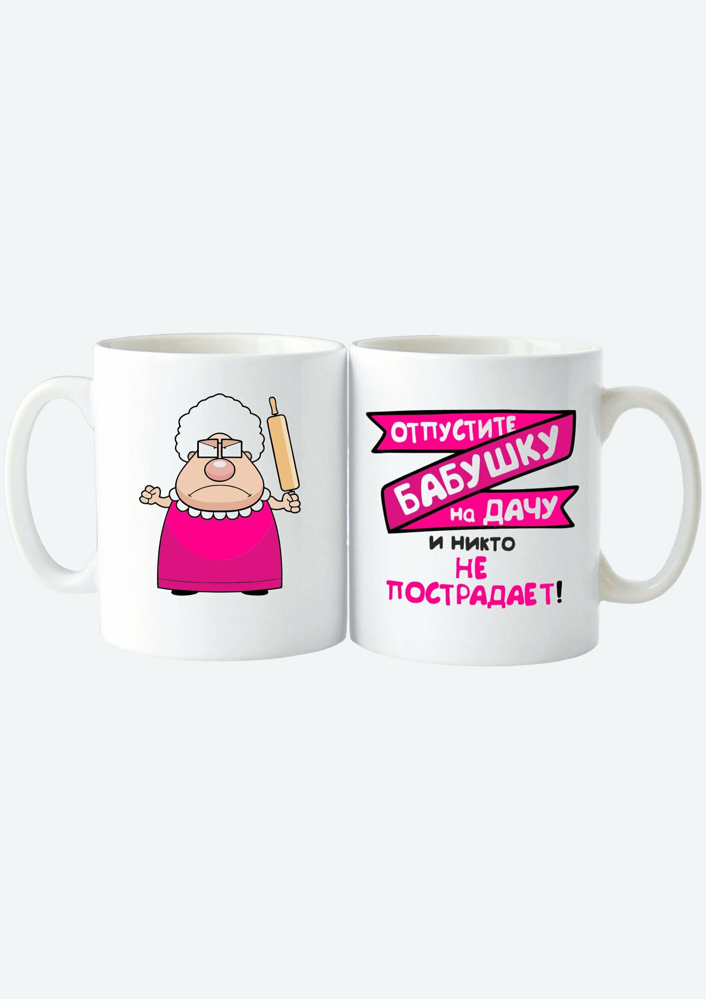 Белая подарочная кружка из керамики с приколом и мемом для бабушки "Отпустите бабушку на дачу, и никто не пострадает", для чая и кофе, 330 мл информация: