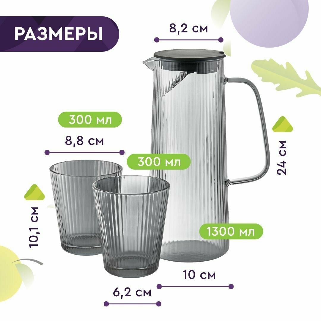 Набор стеклянный кувшин 1300мл и два стакана 300мл Eley информация: