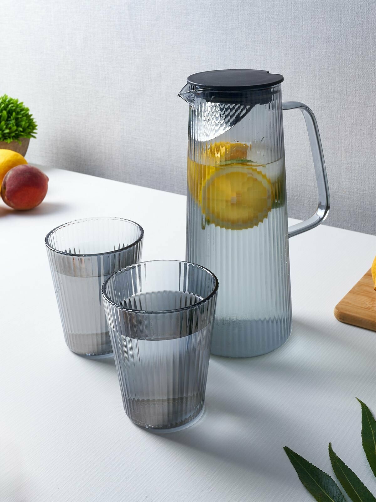10 цен на Набор стеклянный кувшин 1300мл и два стакана 300мл Eley