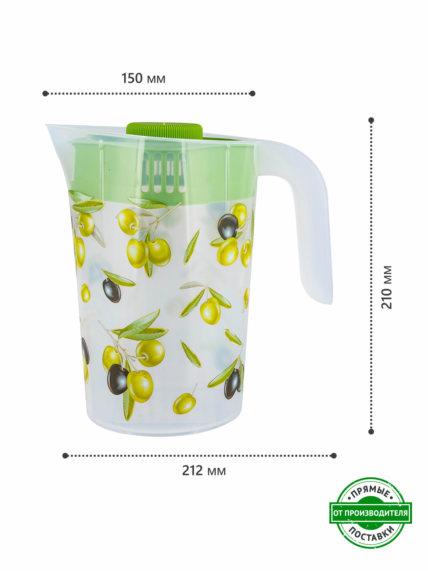10 цен на Кувшин для воды/ кувшин для сока / графин с крышкой 2 л Олива