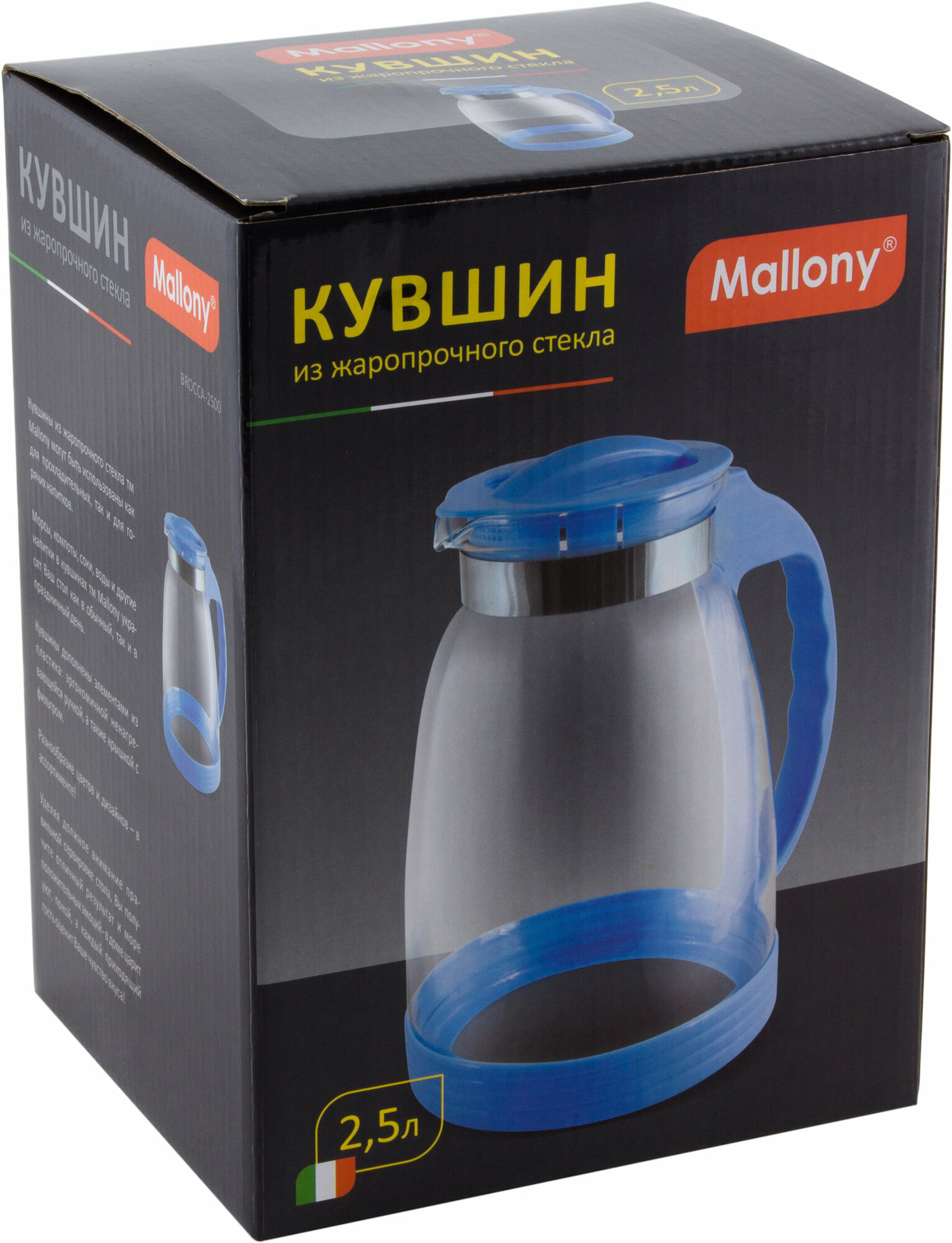 Кувшин из жаропрочного стекла Brocca-2500 с пластик ручкой, 2,5 л, цвет - синий, Mallony информация: