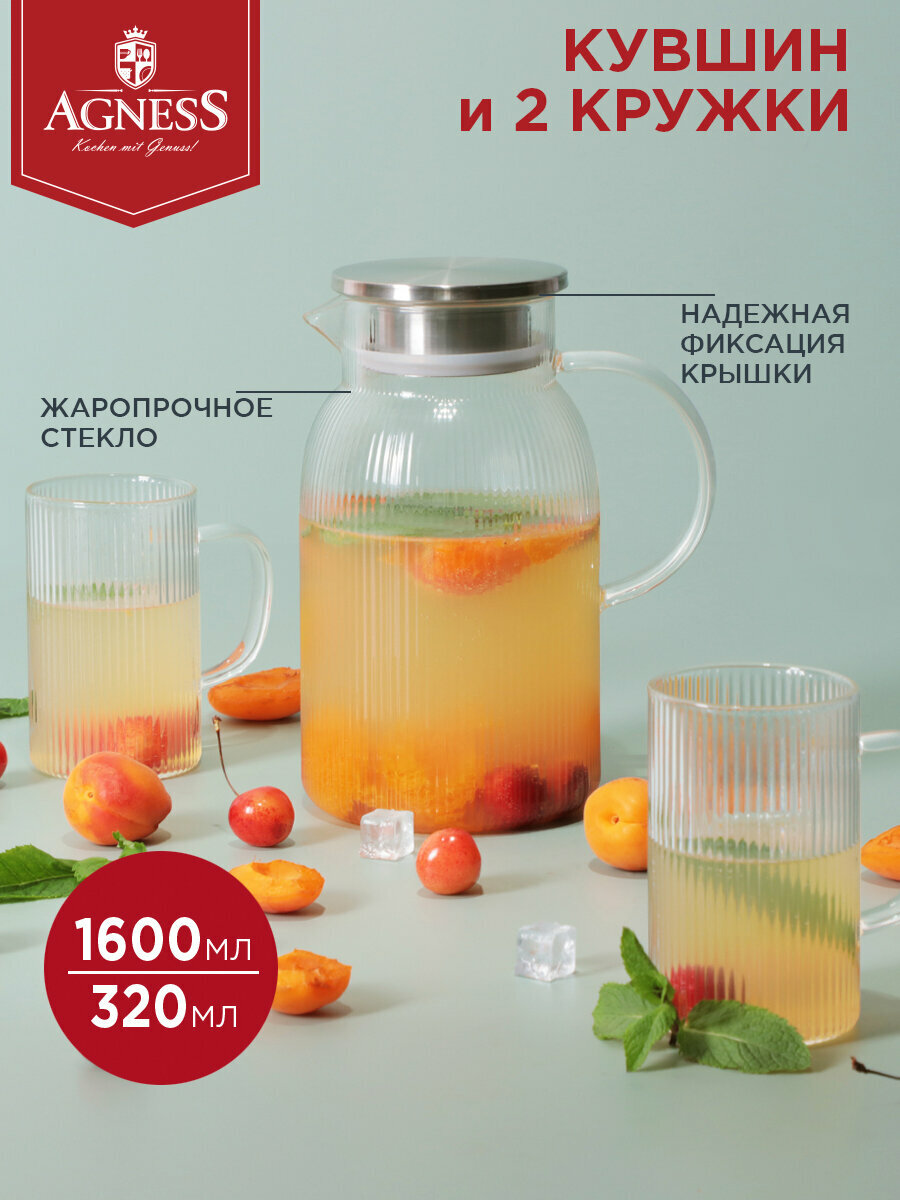 Набор: стеклянный кувшин с крышкой фильтром 1600 мл + 2 кружки 320 мл Agness" High-Tech" 2 331 ₽