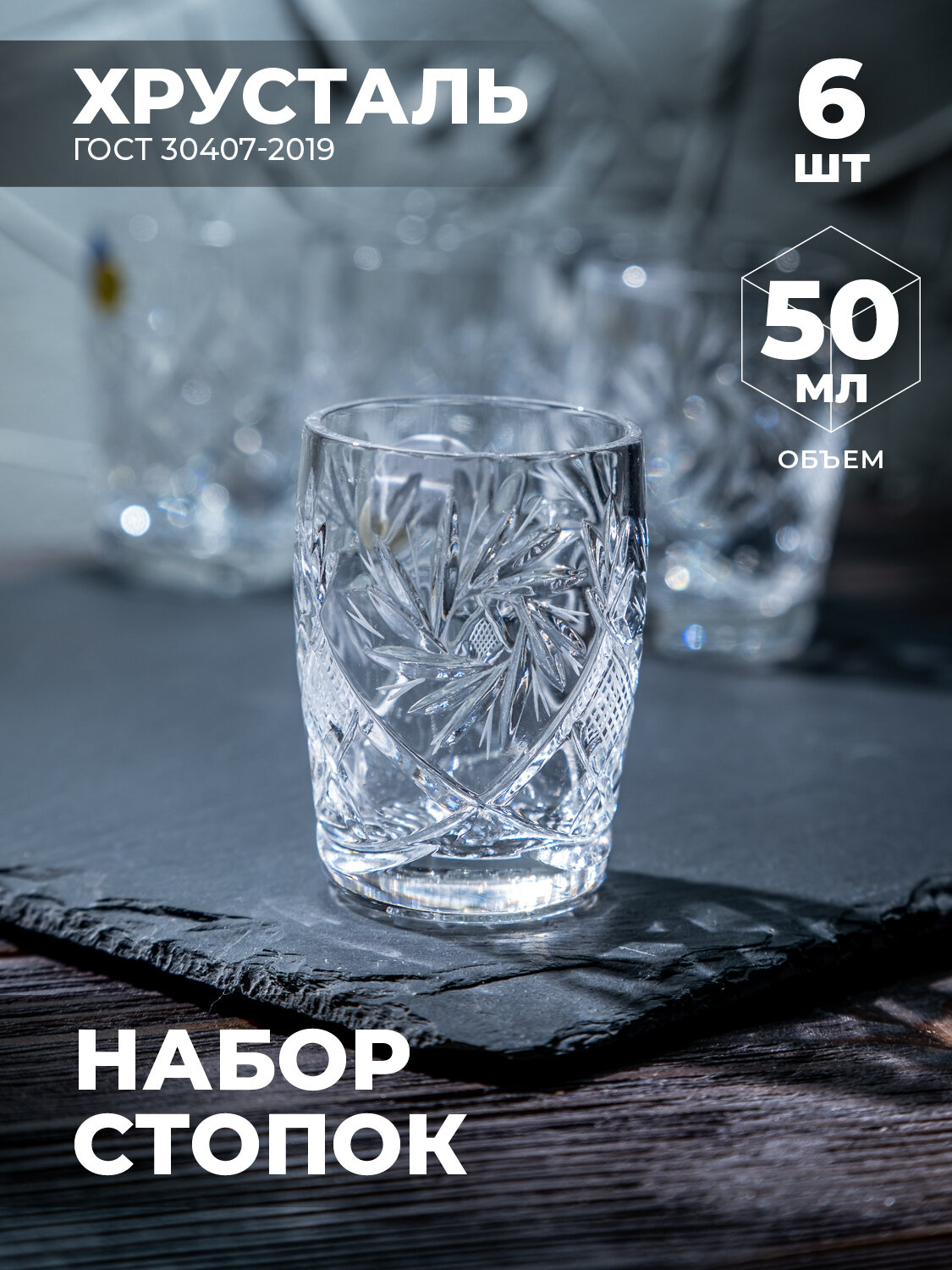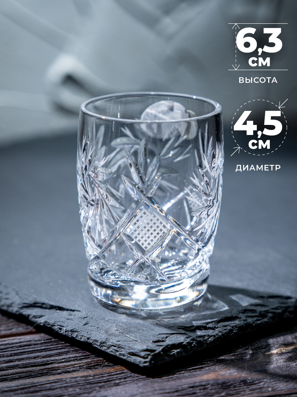 Хрустальные стопки для водки и крепких напитков 25 мл, набор 6 шт. Неман 1100/81, 8887/25гр