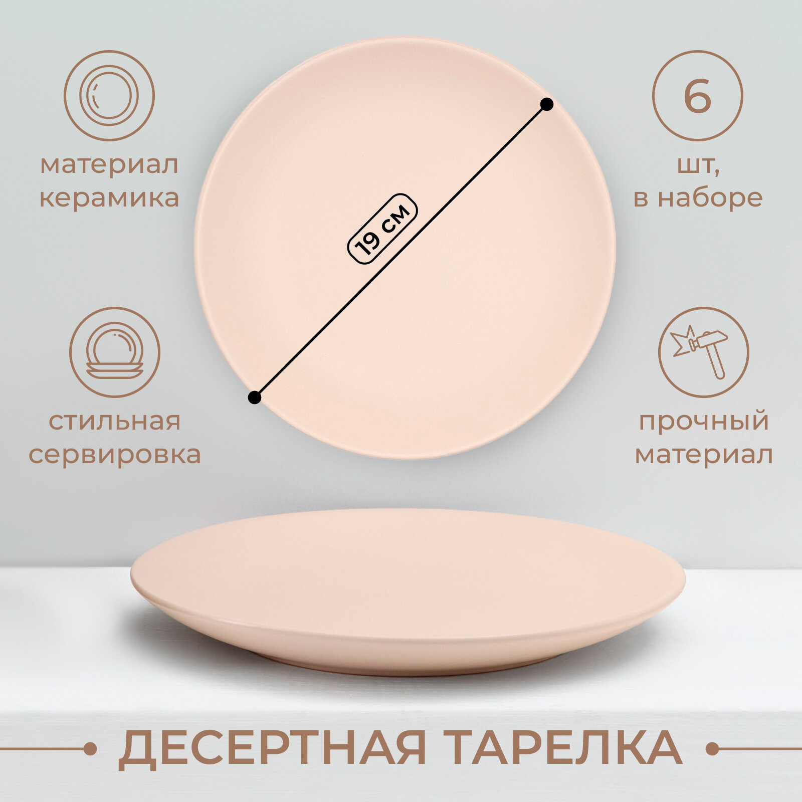 Набор тарелок керамический Доляна «Пастель», 18 предметов: 6 тарелок d=19 см, 6 тарелок d=27 см, 6 мисок d=19 см, цвет крем-брюле информация: