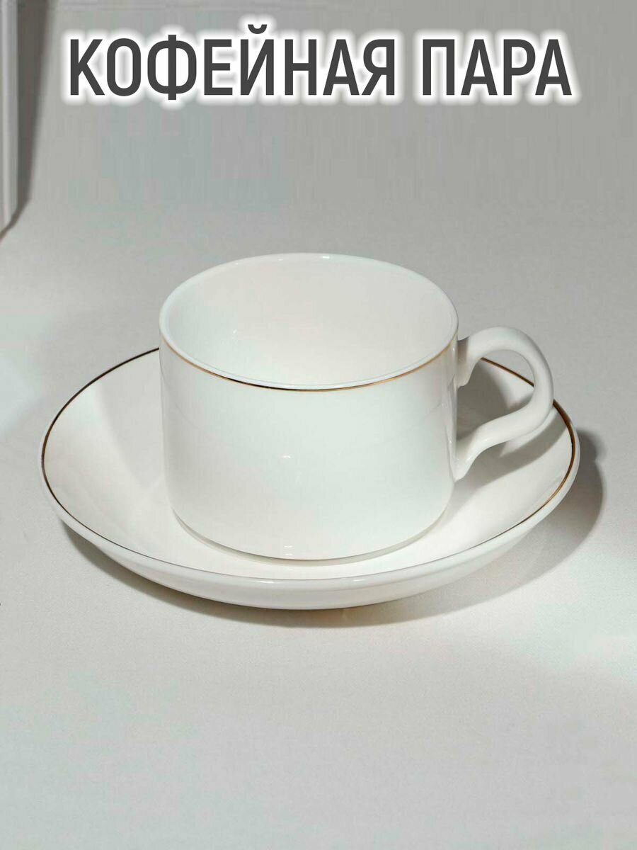 Отзывы на Кофейная пара фарфоровая «Золотая линия», 2 предмета: кружка 130 мл, блюдце d=13,5 см, цвет белый
