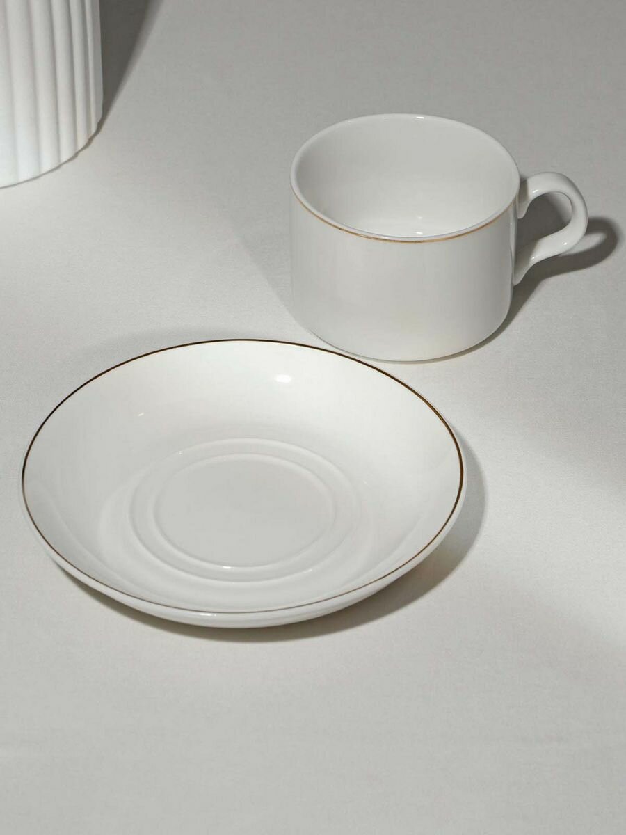 10 цен на Кофейная пара фарфоровая «Золотая линия», 2 предмета: кружка 130 мл, блюдце d=13,5 см, цвет белый
