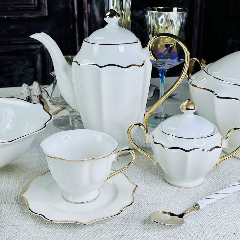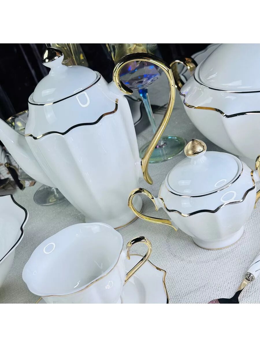 Отзывы на Чайный сервиз на 6 персон 14 предметов Lenardi Magnolia Gold чайник, чайные пары, сахарница, фарфор
