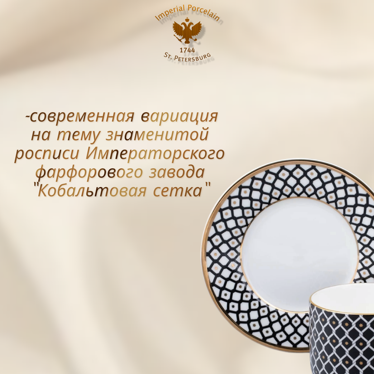 Чайная пара Императорский фарфоровый завод Кобальтовая клетка, форма Тюльпан, 2 предм.