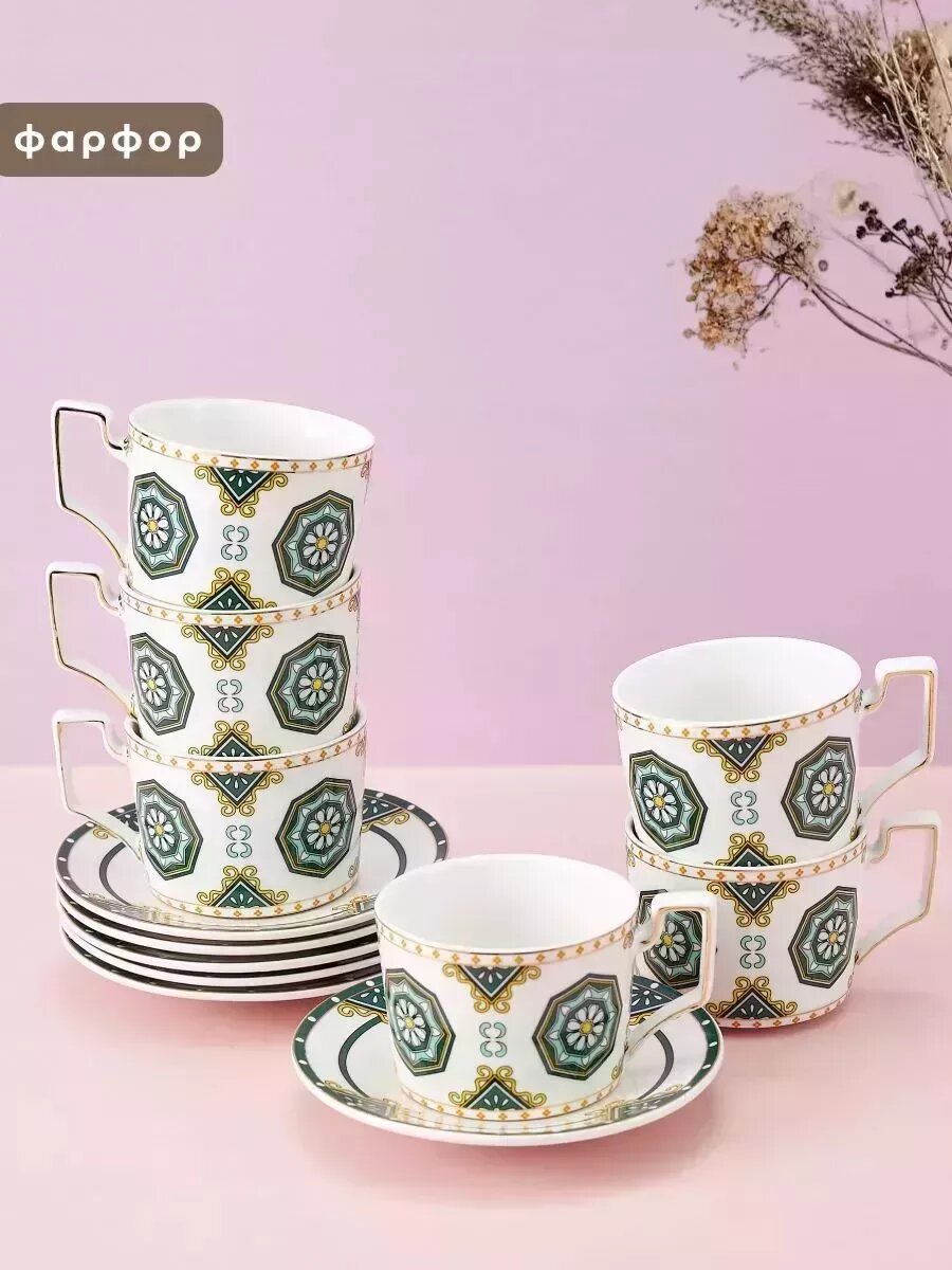 Кофейный набор 12пр. Тиффани Костяной фарфор Lenardi (197037)