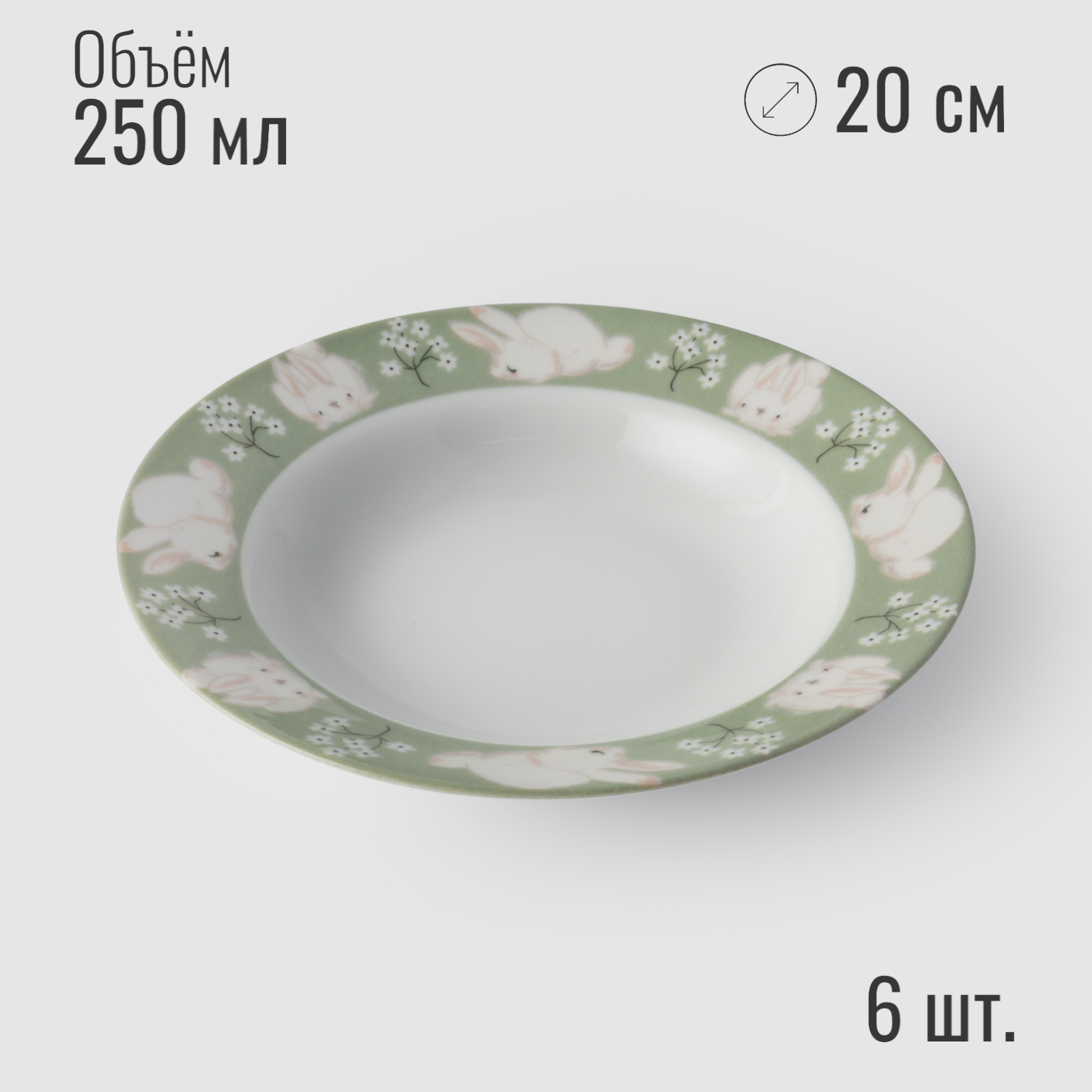 10 цен на Набор посуды столовой на 6 персон с кружками, 24 предмета "Зайка", фарфор, сервиз обеденный