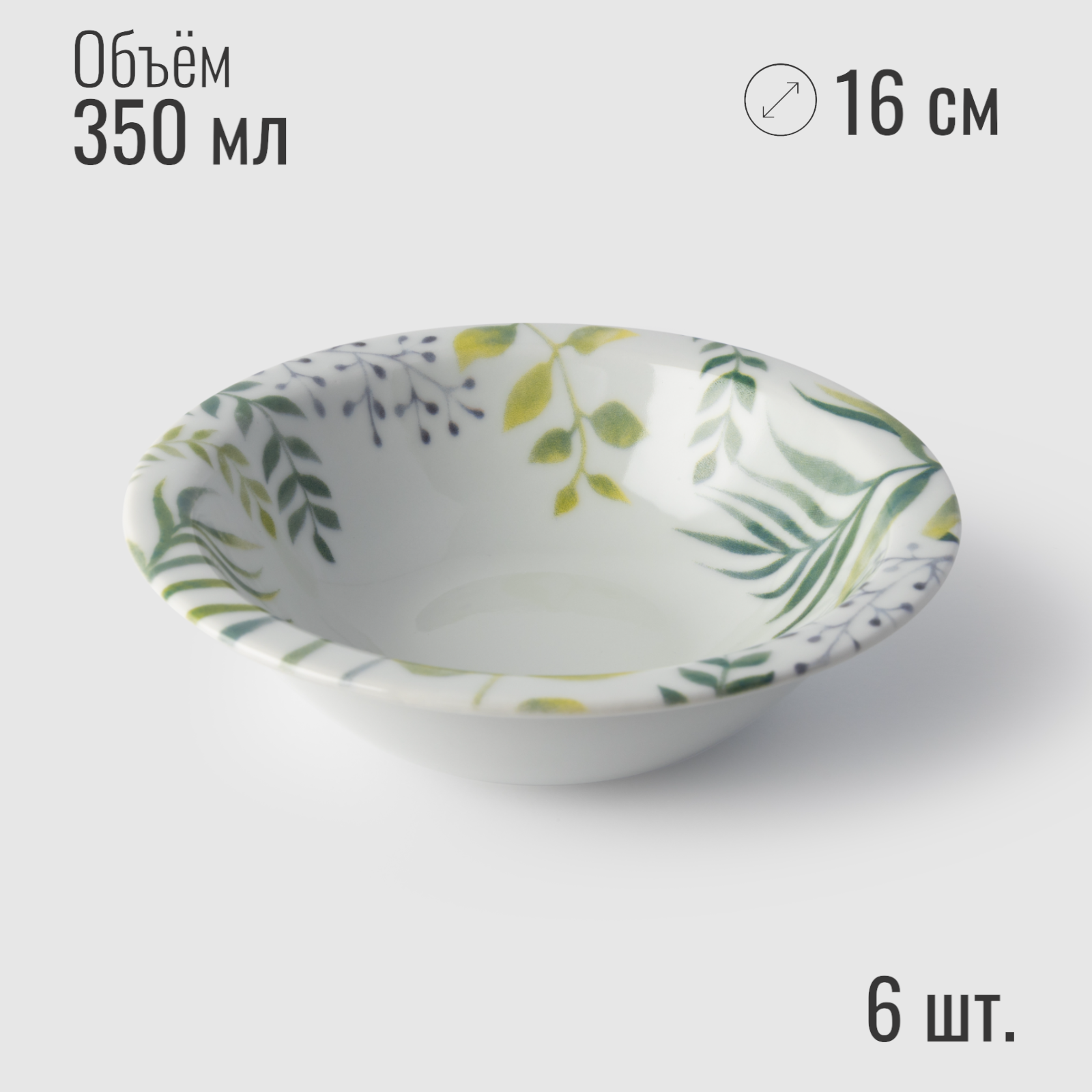 Салатник 480 мл 155 мм тарелка глубокая WHITE LILY "Кустовая роза" 6 штук