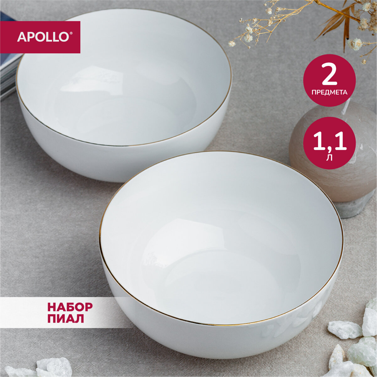 Отзывы на Тарелка глубокая суповая из фарфора, набор обеденных тарелок, салатник для сервировки, фарфоровая посуда Apollo "Cintoro", 17,5 см, 1100 мл, 2 пр