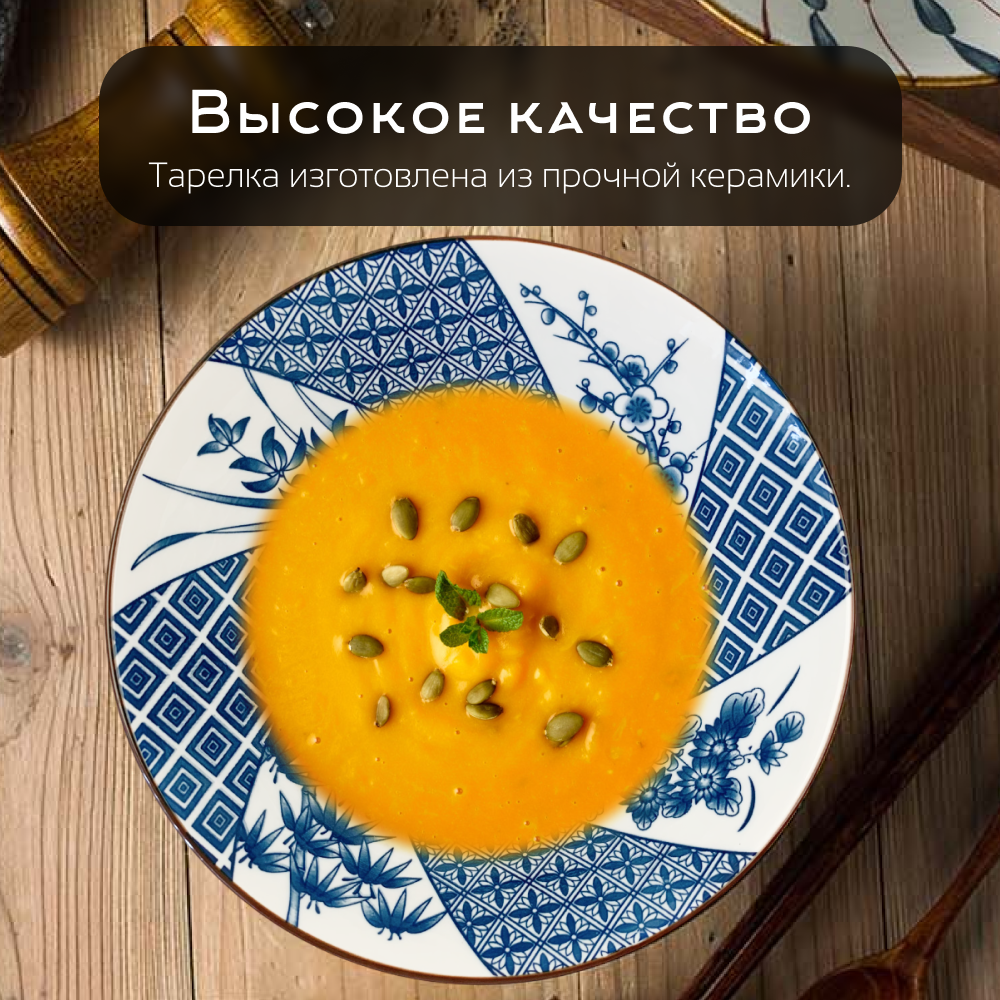 Тарелка для супа бульонница Homium, Japanese Collection, Очарование, глубокая, цвет белый/синий, D20см 564 ₽