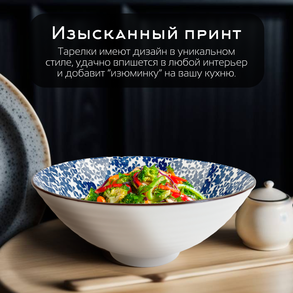 Набор тарелок для вторых блюд и салатов Homium, Japanese Collection, Очарование, глубокая, D20см, цвет белый/синий 4 160 ₽