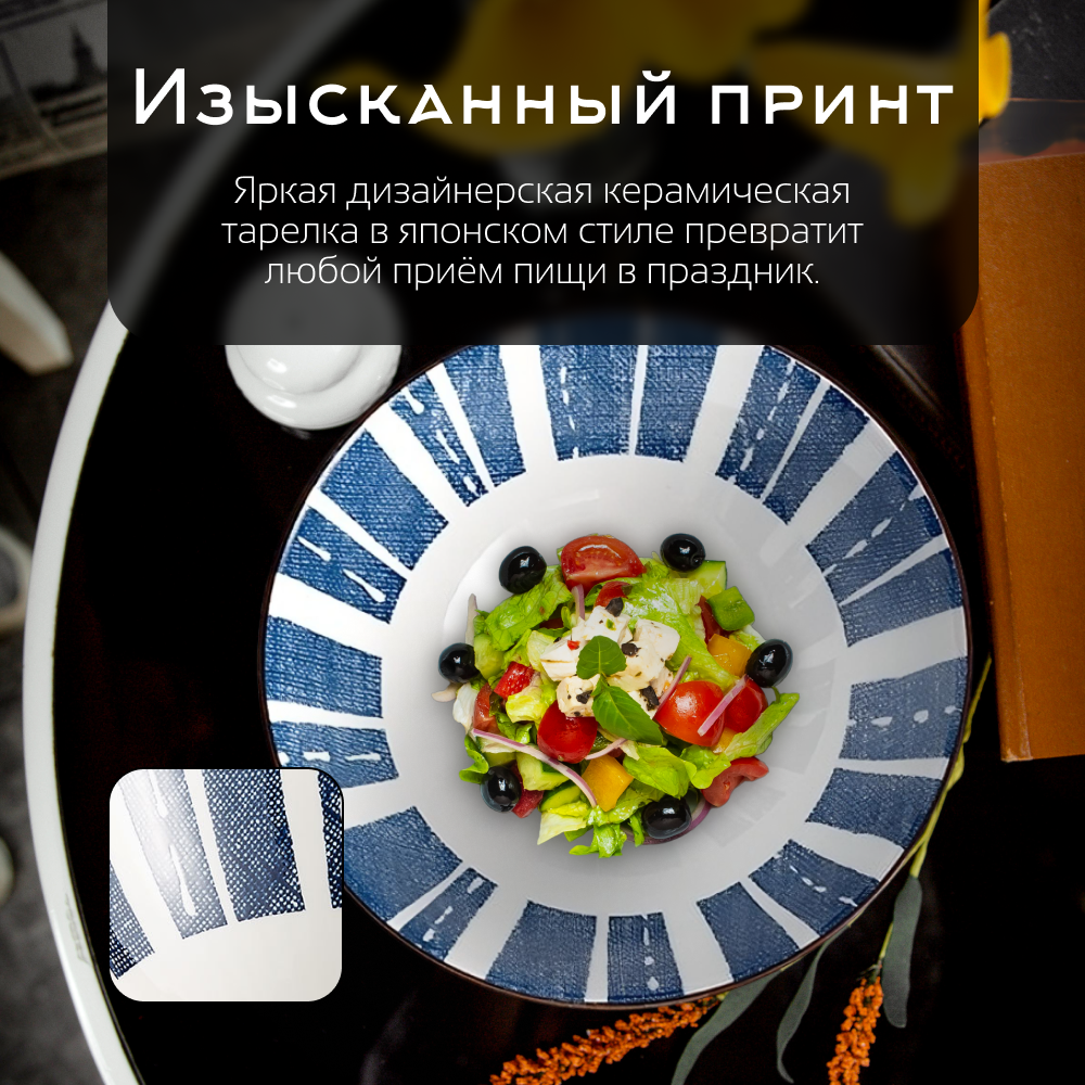 Набор тарелок для вторых блюд и салатов Homium, Japanese Collection, Очарование, глубокая, D20см, цвет белый/синий 4 160 ₽
