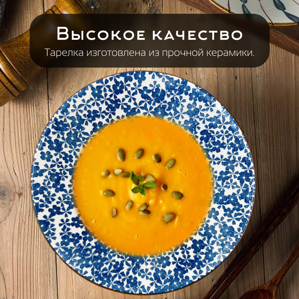 Тарелка глубокая керамическая для супа Homium, Japanese Collection, Очарование, цвет белый/синий, D20см 720 ₽