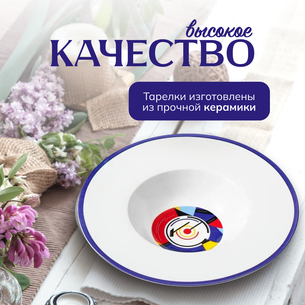 Тарелка керамическая Homium, в стиле русский авангард глубокая, 1 шт, белый, D28 см 1 419 ₽