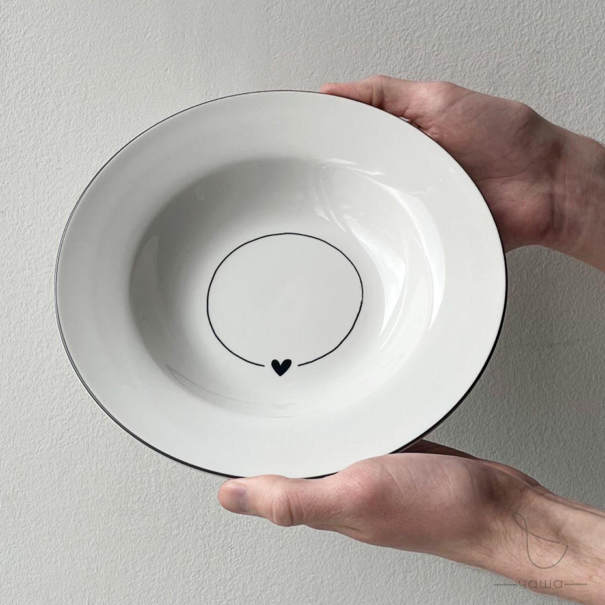 Набор глубоких тарелок 2 шт 600 мл Chasha, белые с черной каймой