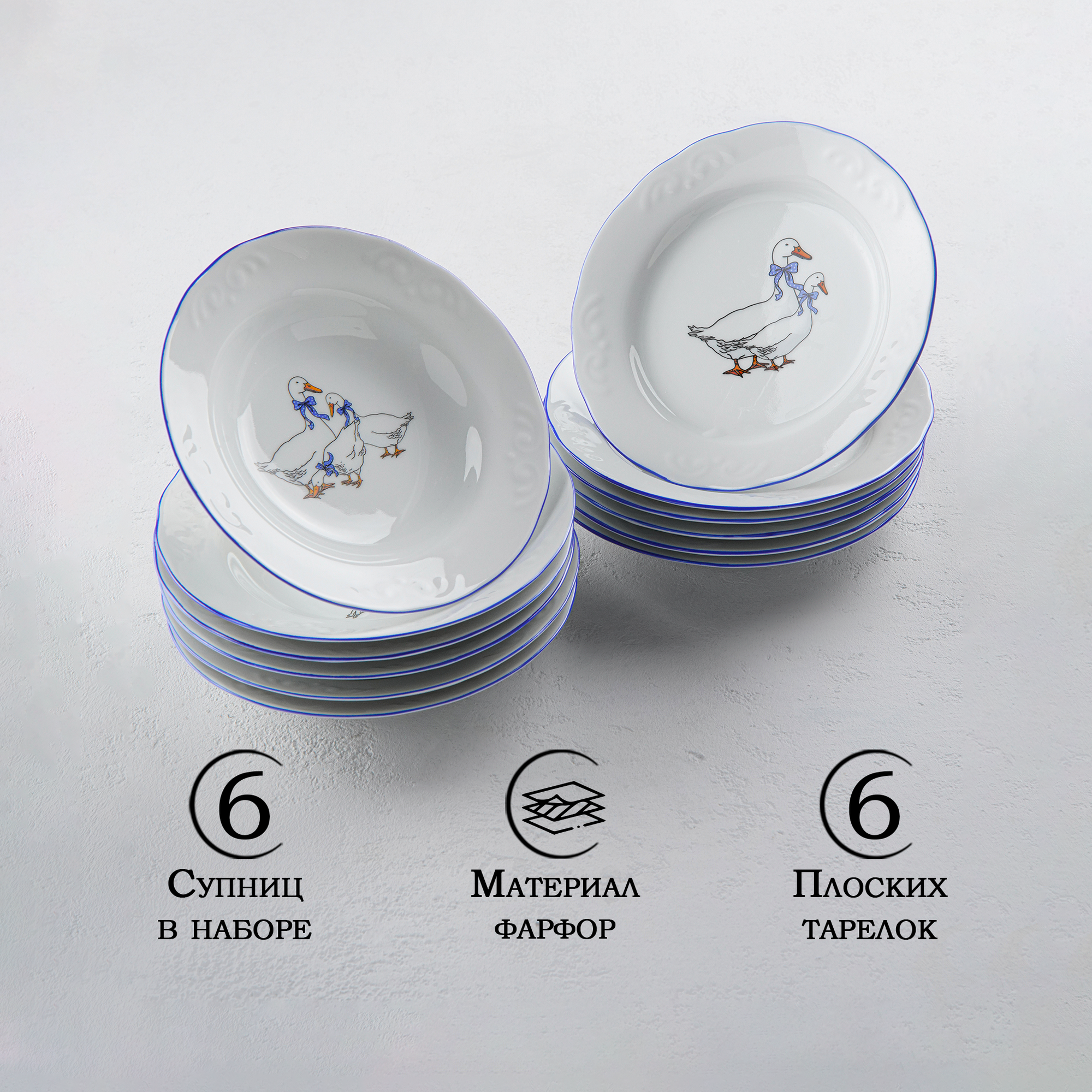 10 цен на Набор тарелок «Гуси», фарфор, 12 шт d=20 см, микс