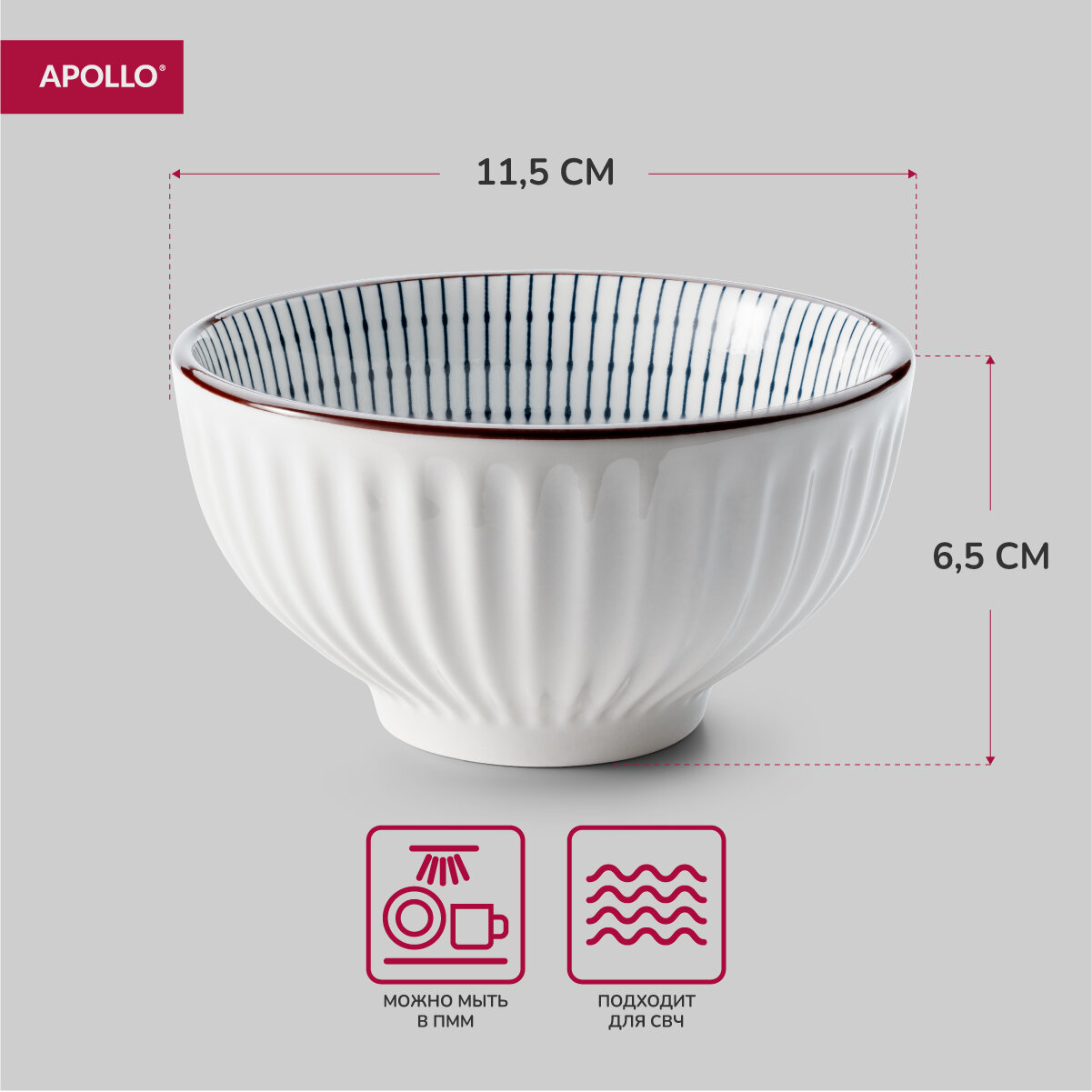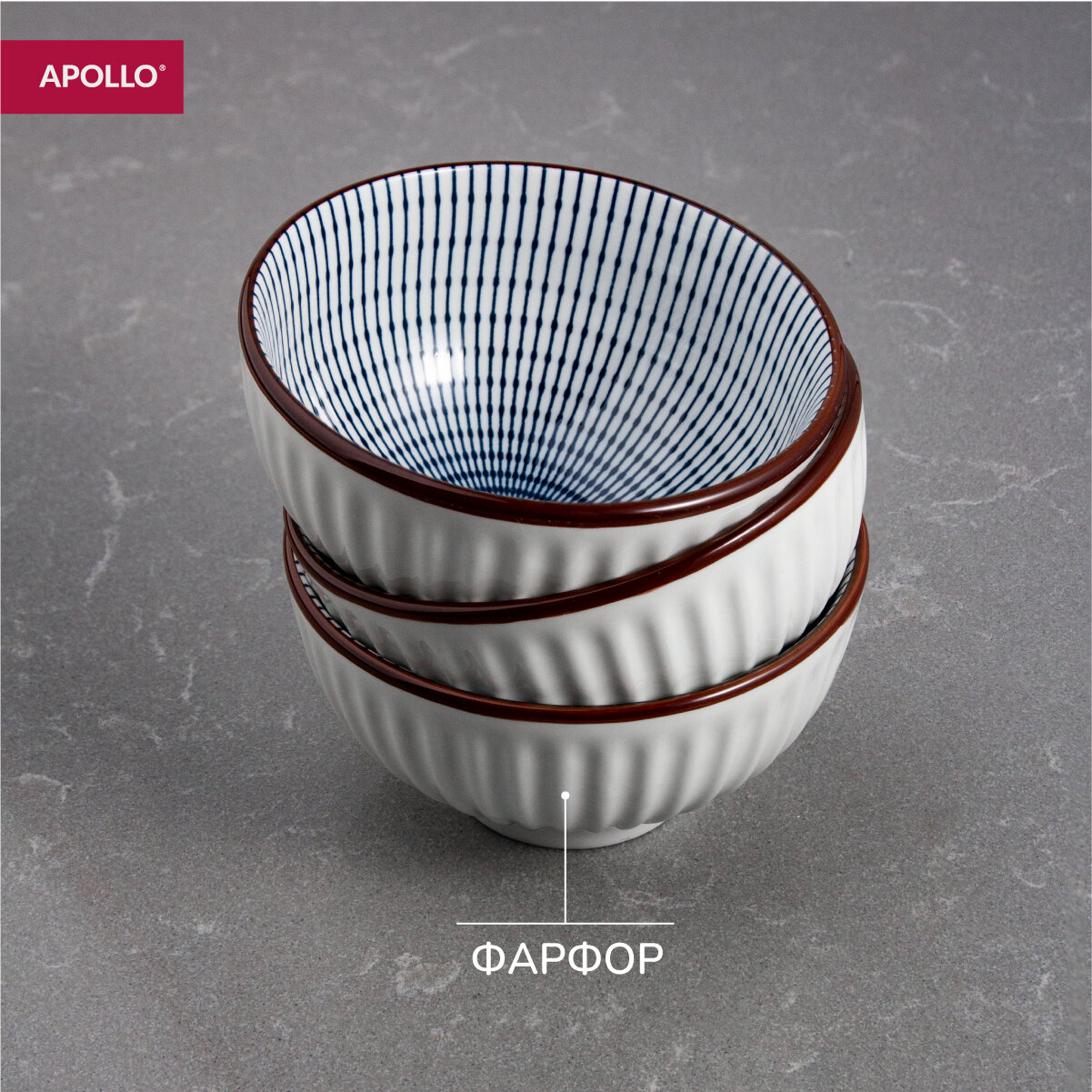 Тарелка глубокая фарфоровая APOLLO "Ribb", 600 мл